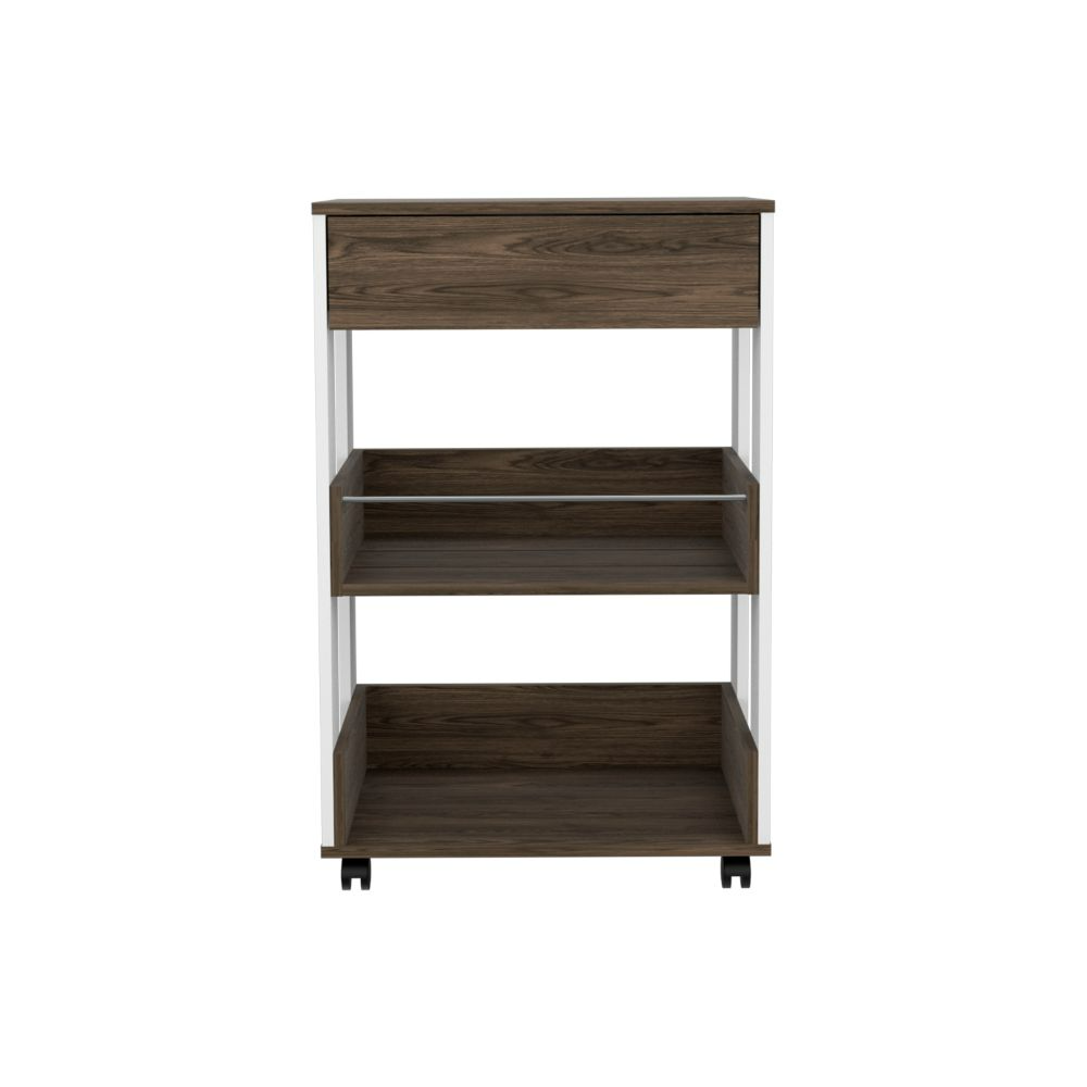 With a modern style, it has two large shelves to organize your kitchen elements, in addition to a large low shelf to store your objects more safely and a countertop (27.40'') that you can use to prepare your favorite foods and four caster wheels for easy mobility.