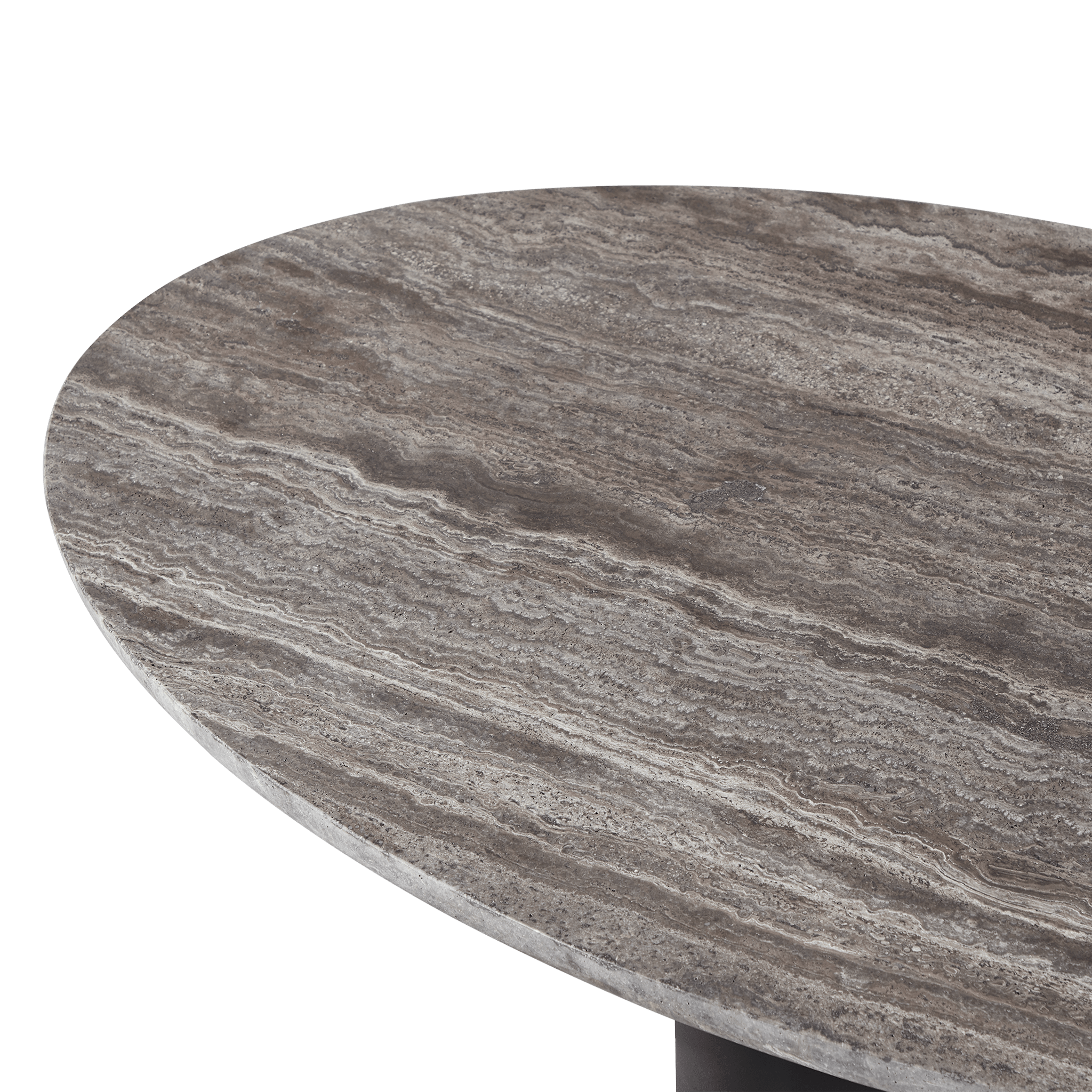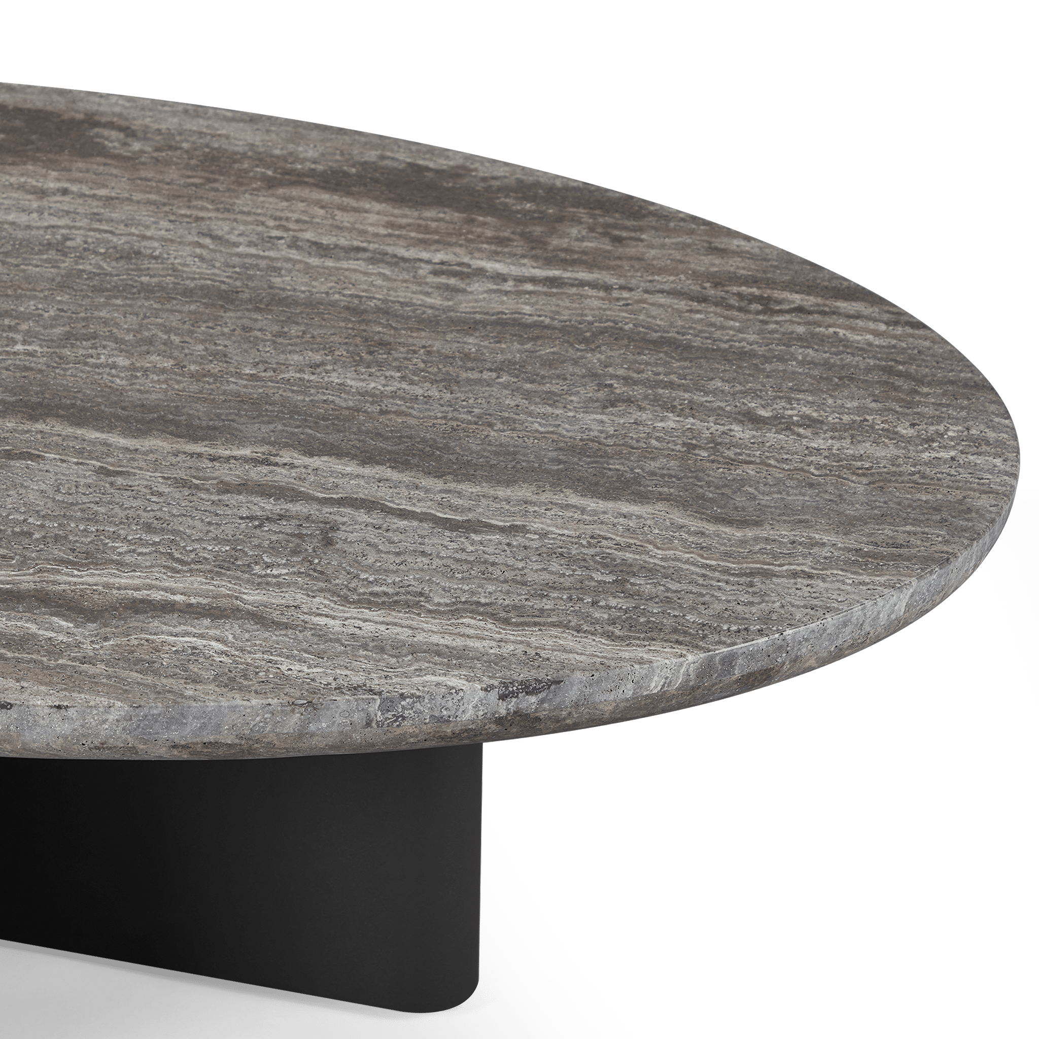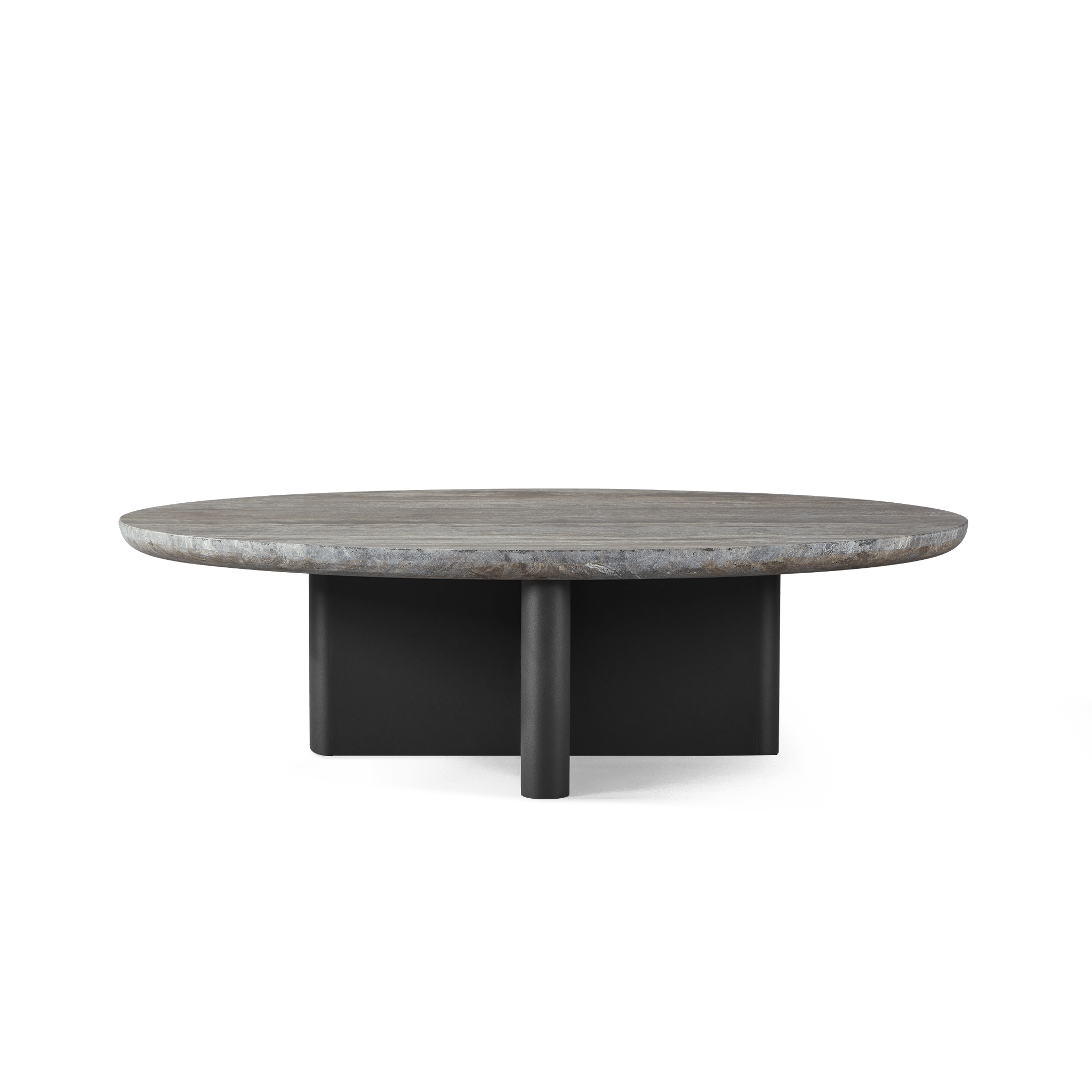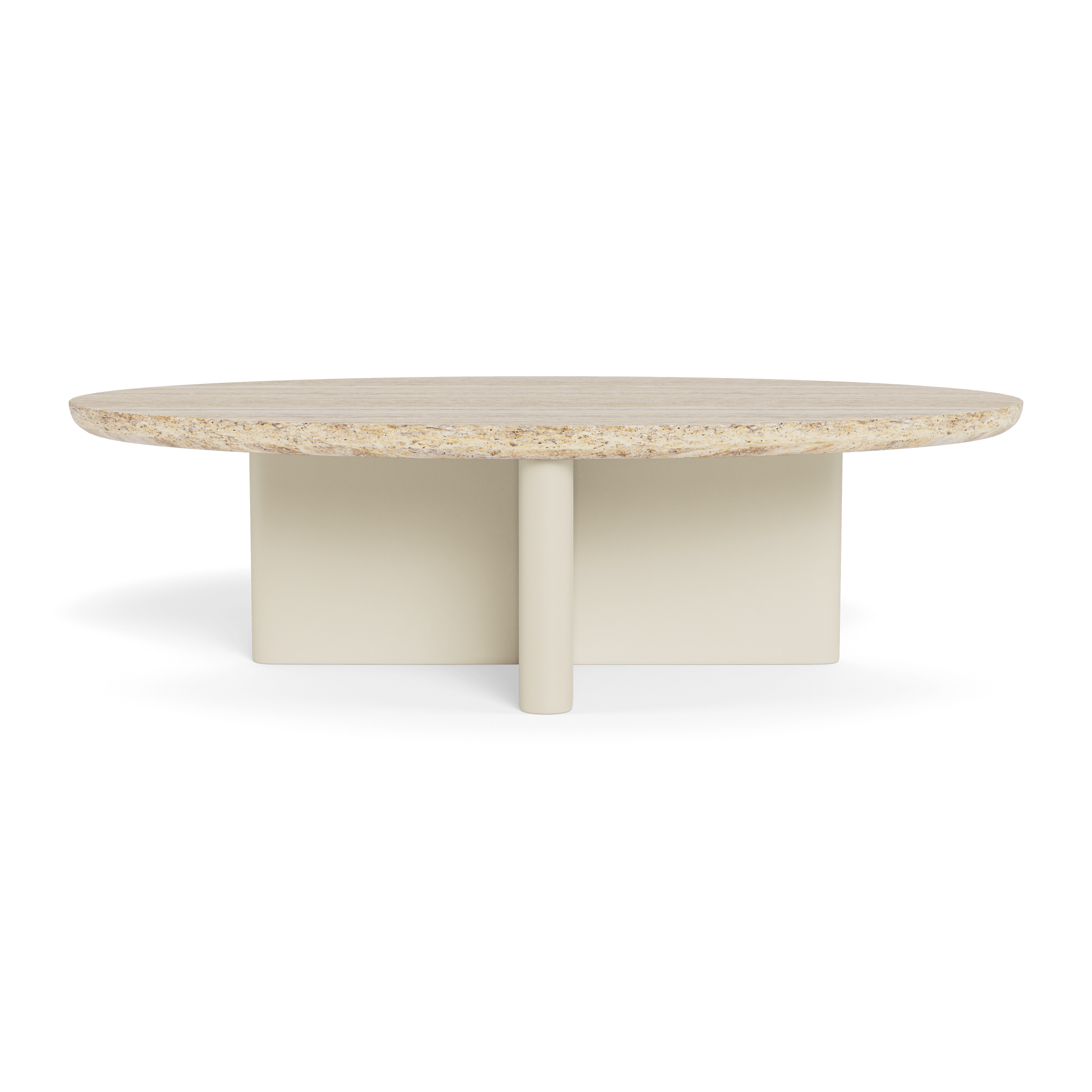 Our Victoria collection balances sculptural curves and right angles for true simplicity of proportion. The Victoria Teak Oval Stone Coffee Table was designed as the perfect anchor for your seating set — featuring a solid Indonesian teak base in Natural supporting an exaggerated oval travertine stone top. Special details like curved edges and a half–bull nose add extra refinement. Functional for sofa pairings but still very much a statement piece, this contemporary outdoor coffee table brings harmony to a variety of spaces.