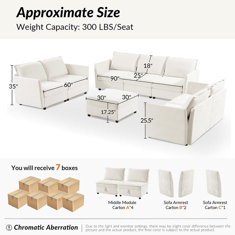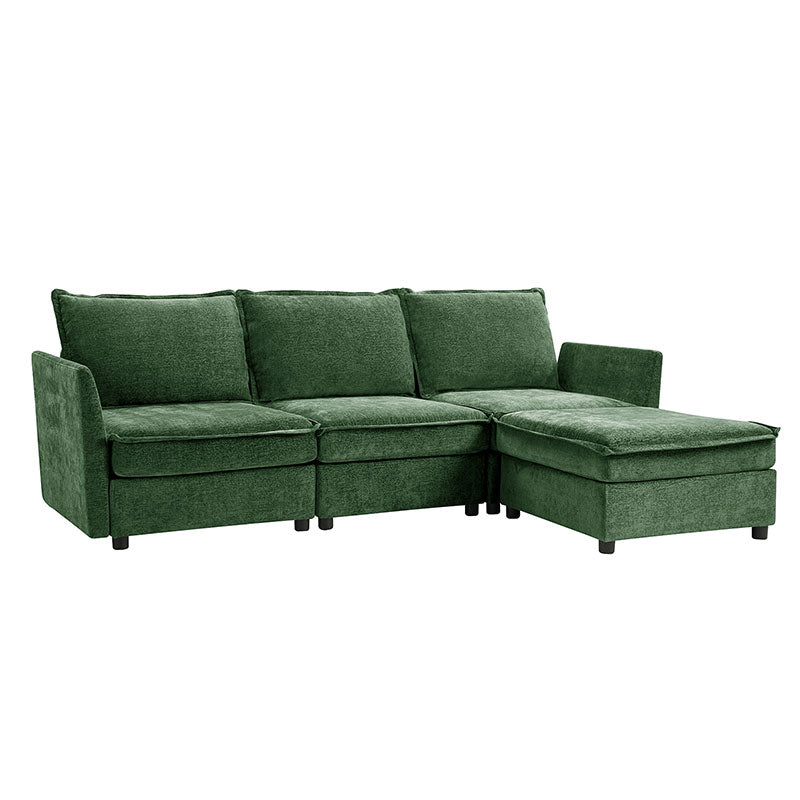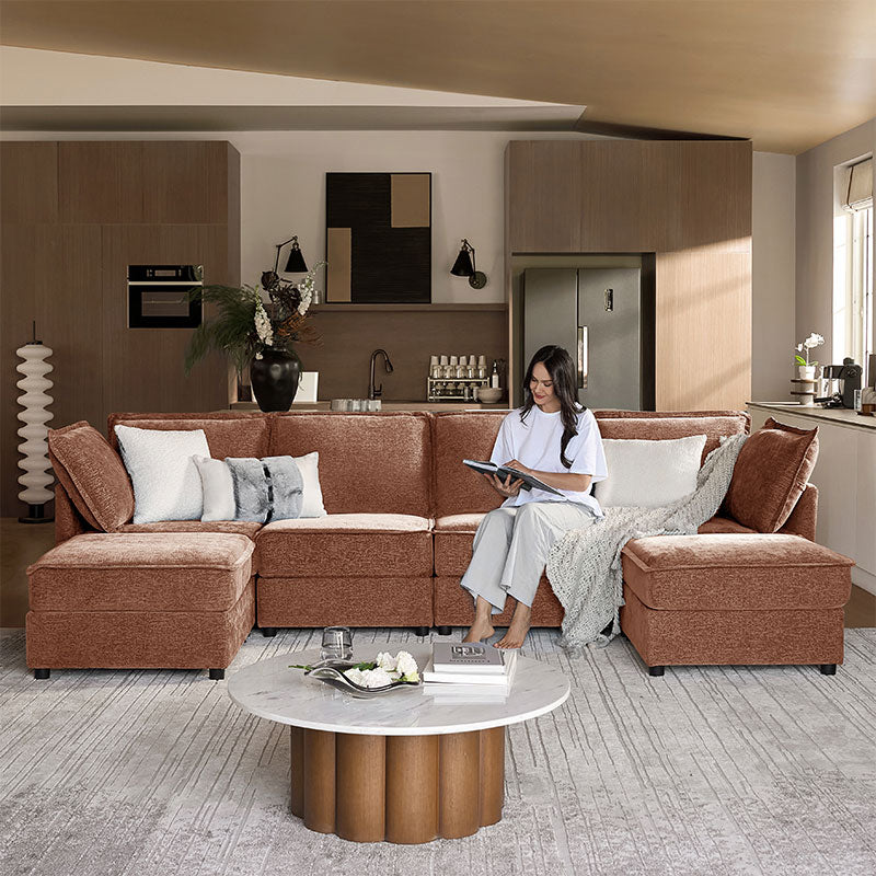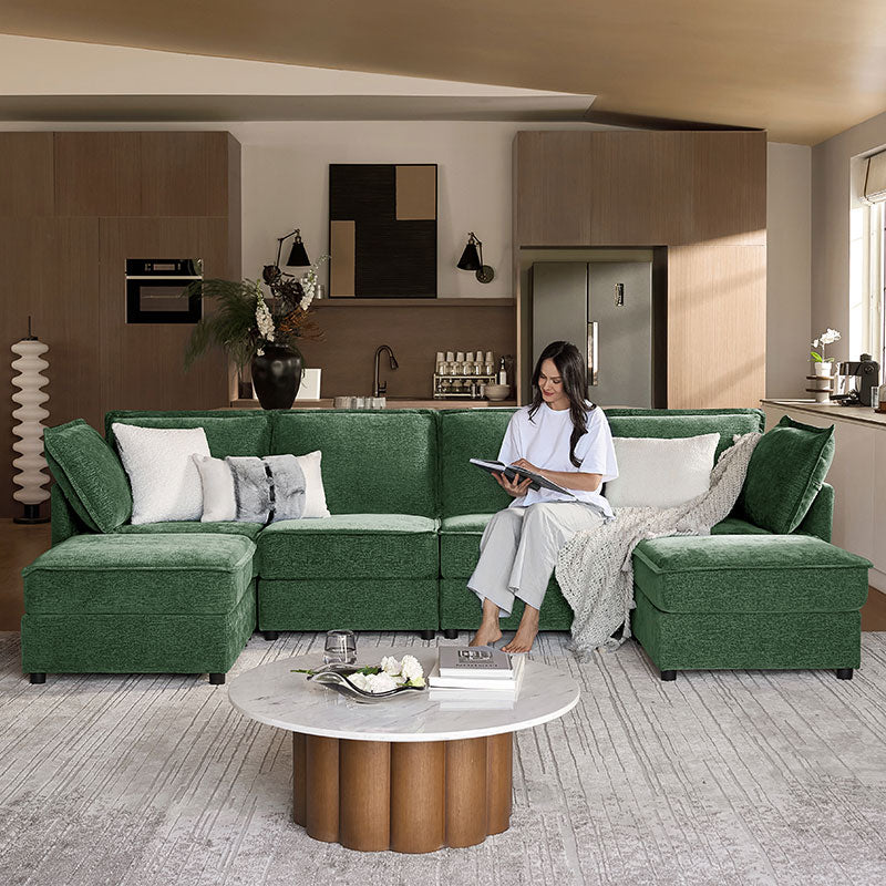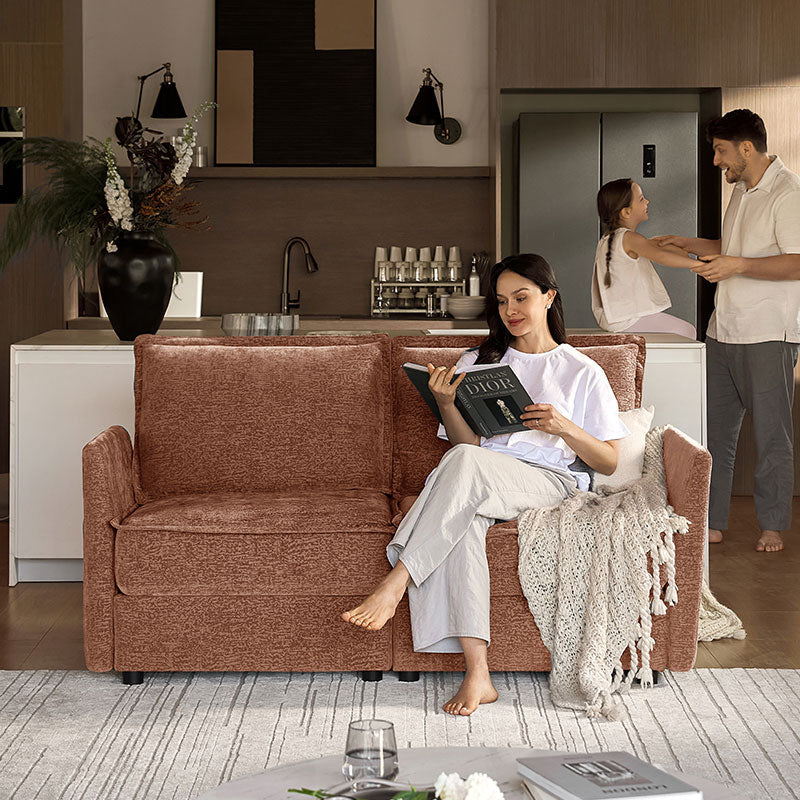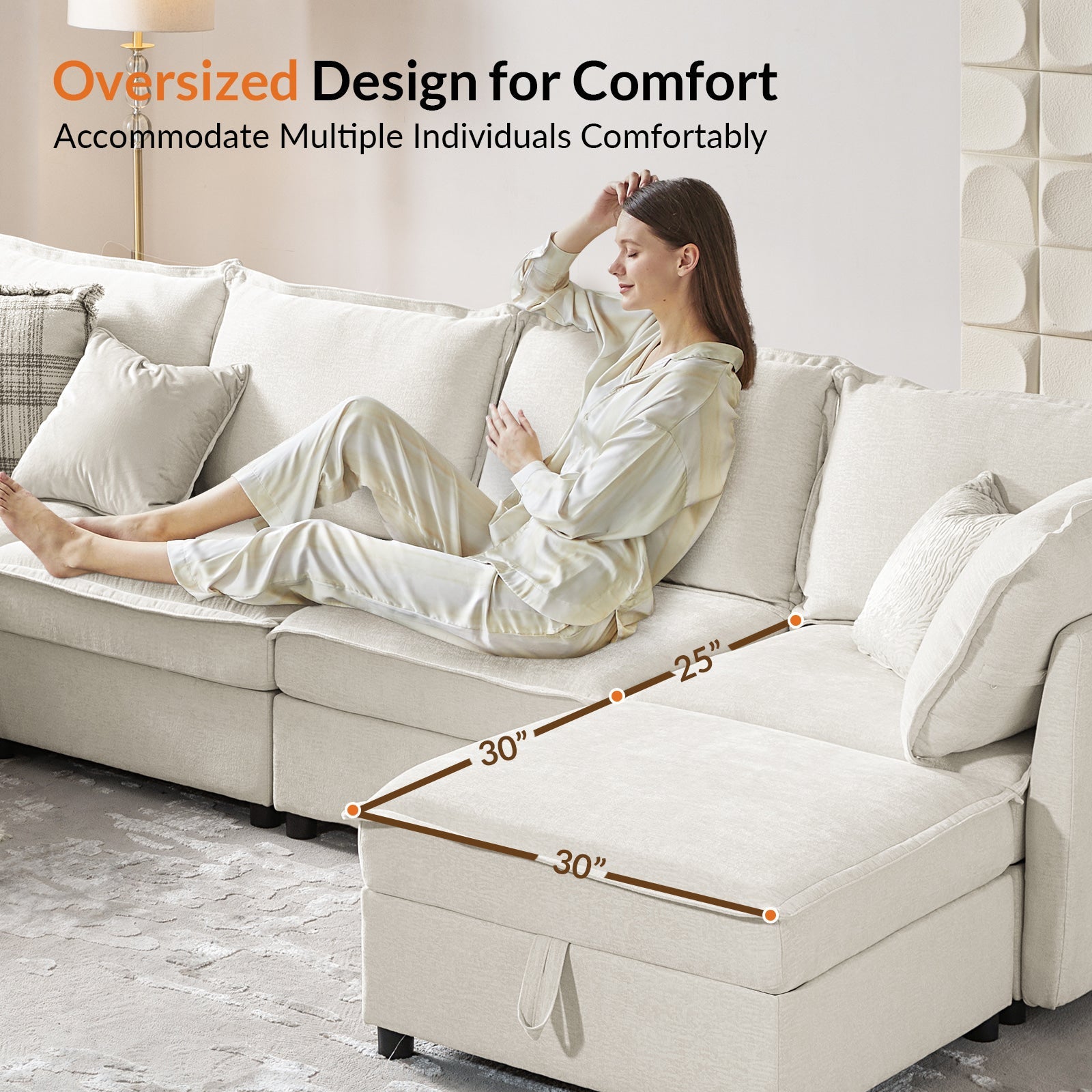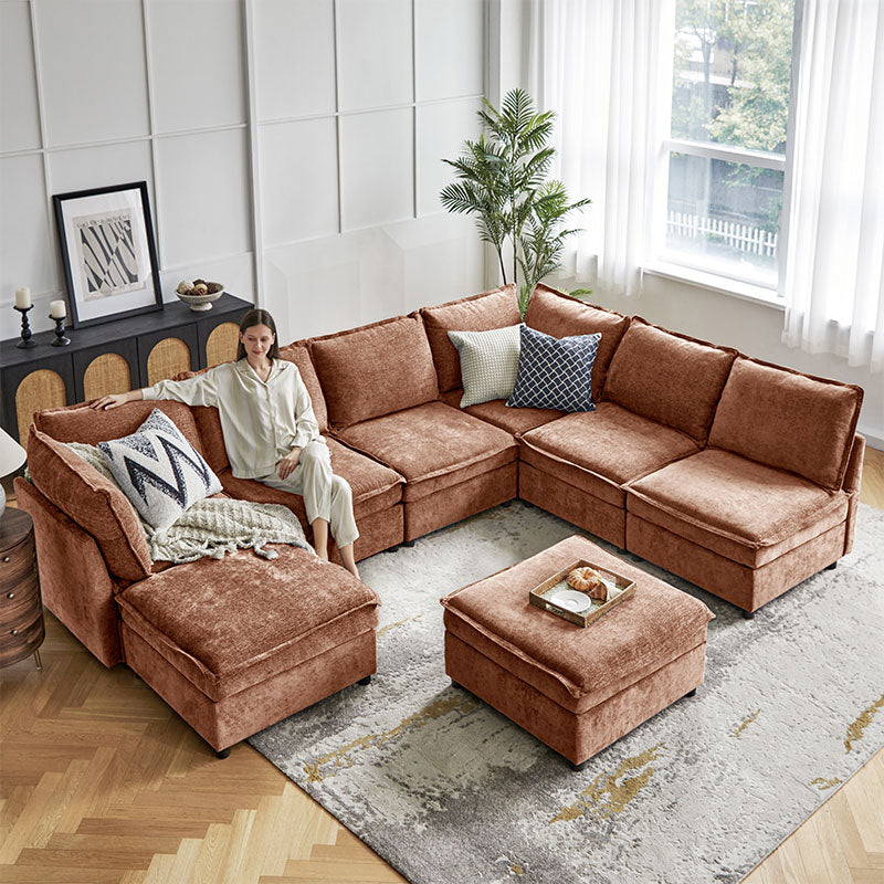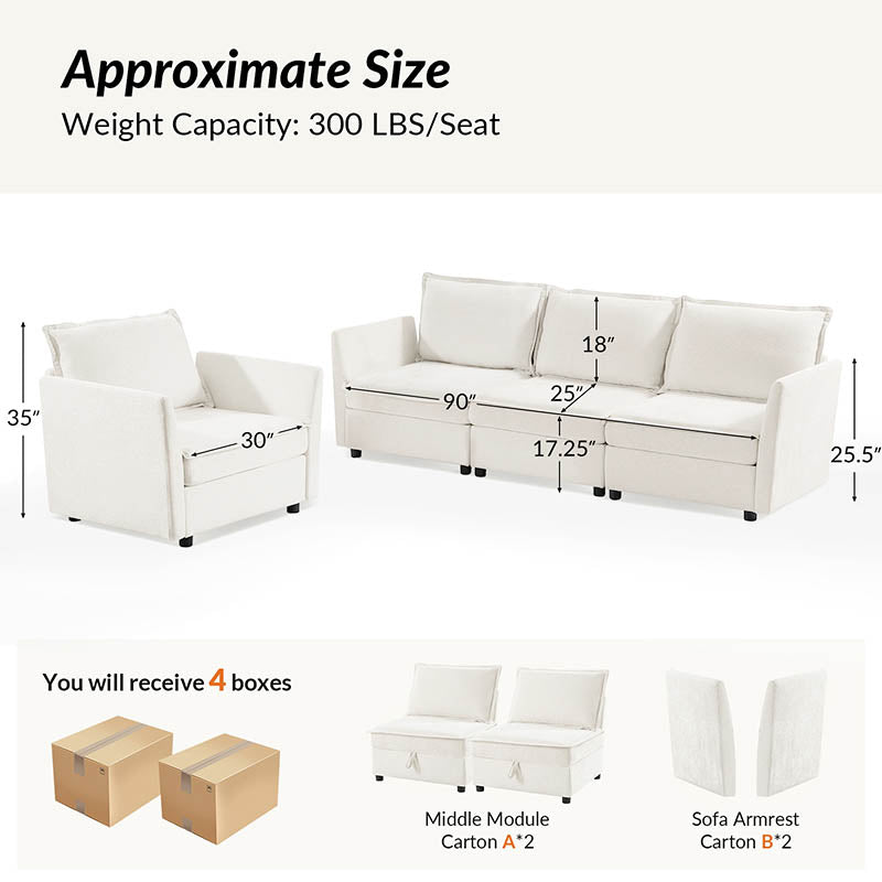 This modular sofa is designed for maximum comfort and versatility. Featuring 1.5x extra-wide seats, it caters specifically to larger individuals and expansive spaces. The soft cushions offer exceptional comfort. Hidden storage compartments under the seats help reduce clutter and provide easy access to everyday items. Its modular design allows you to rearrange the sections to create different living room layouts. Assembly is hassle-free with no tools required, and the oversized sectional sofa's segmented packaging ensures easy transportation. Additionally, the fabric covers are removable, maintaining a fresh and clean look.