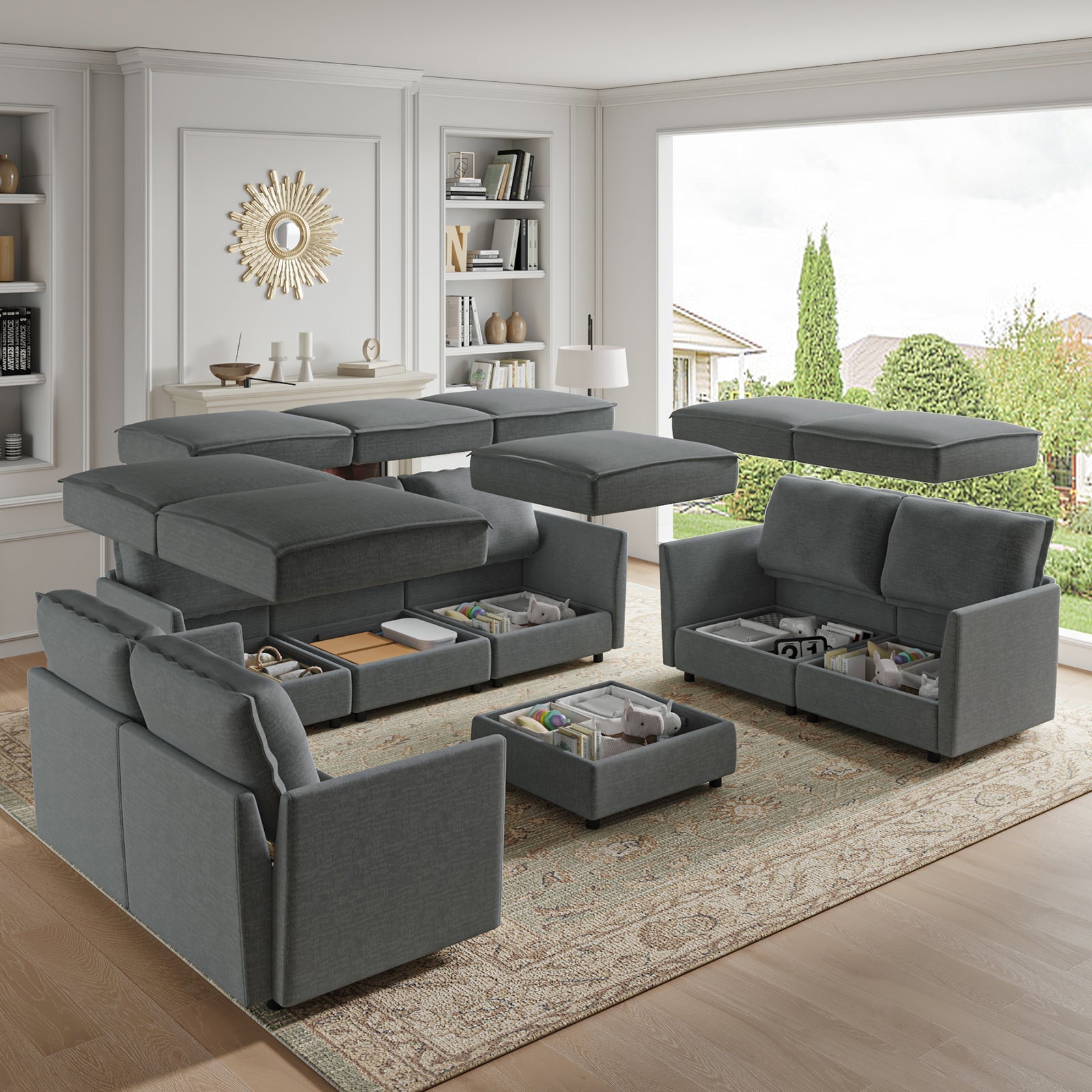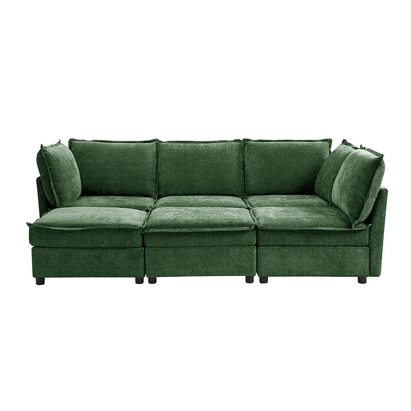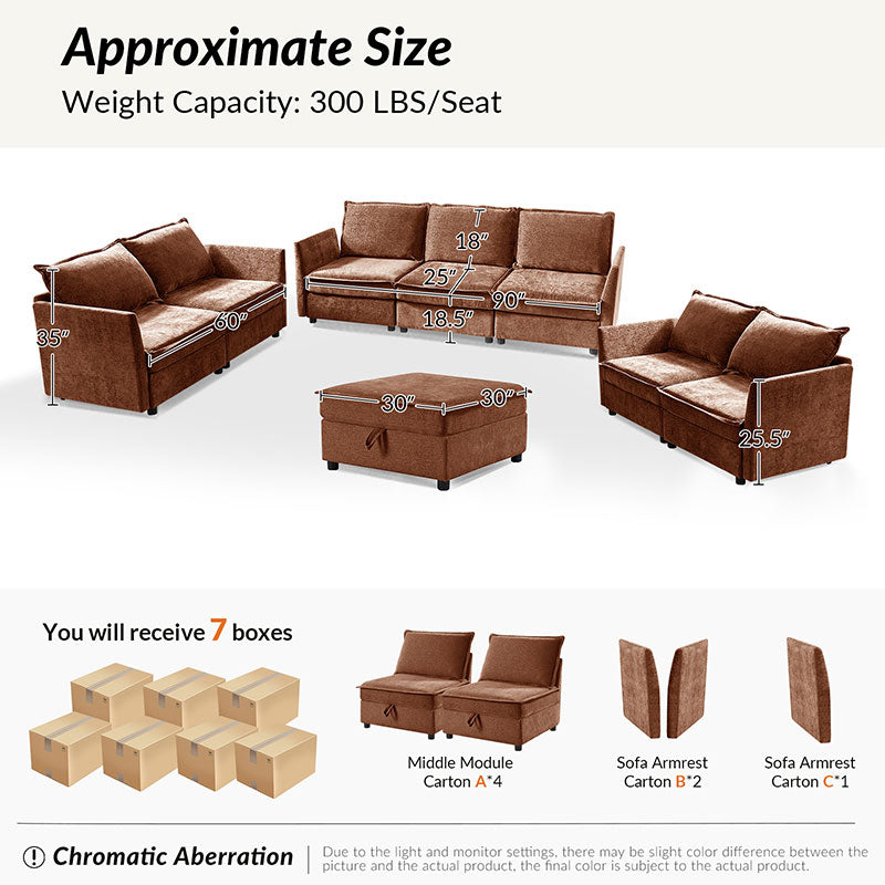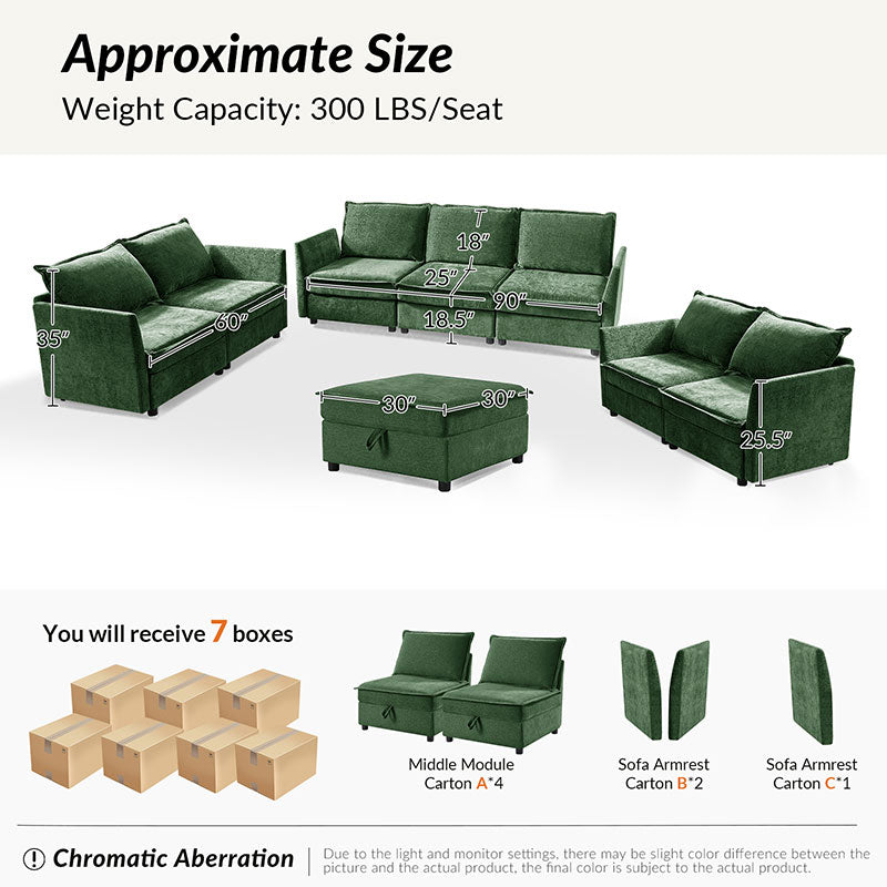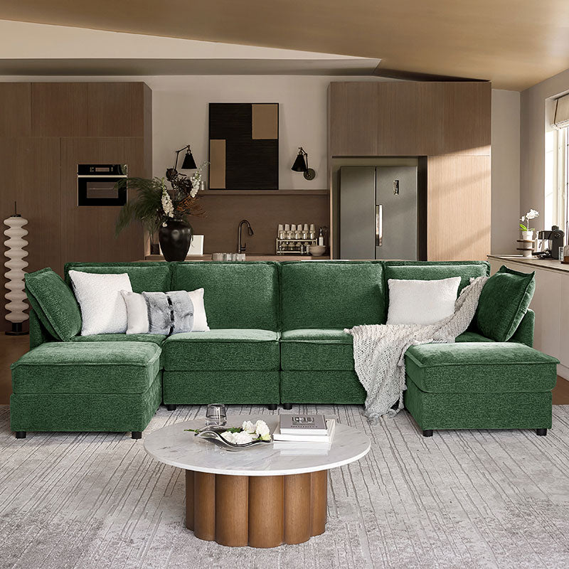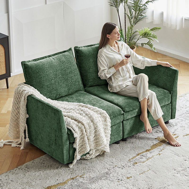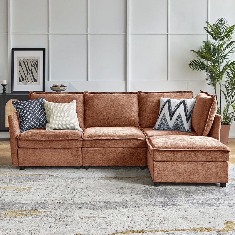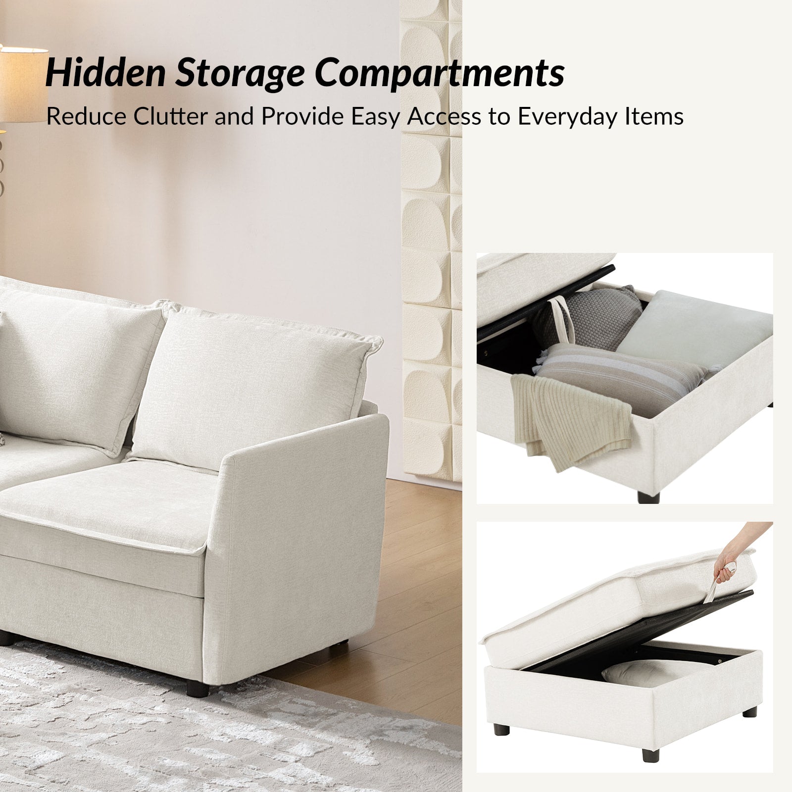 This modular sofa is designed for maximum comfort and versatility. Featuring 1.5x extra-wide seats, it caters specifically to larger individuals and expansive spaces. The soft cushions offer exceptional comfort. Hidden storage compartments under the seats help reduce clutter and provide easy access to everyday items. Its modular design allows you to rearrange the sections to create different living room layouts. Assembly is hassle-free with no tools required, and the oversized sectional sofa's segmented packaging ensures easy transportation. Additionally, the fabric covers are removable, maintaining a fresh and clean look.