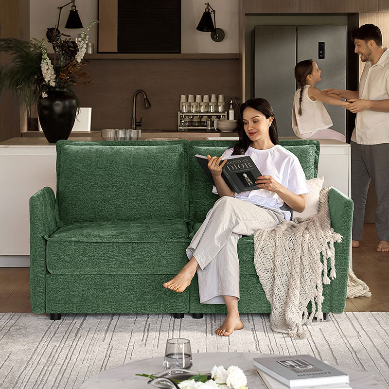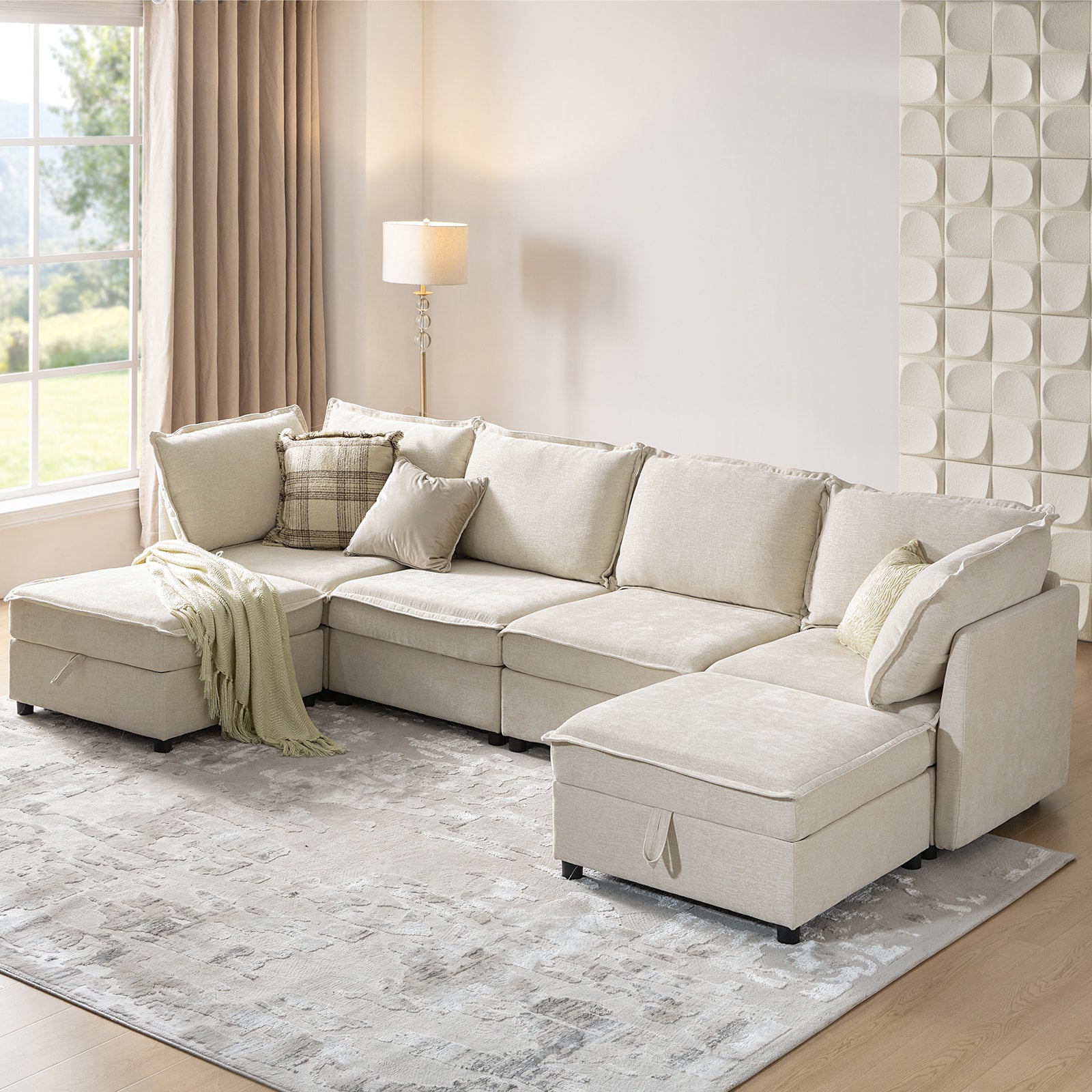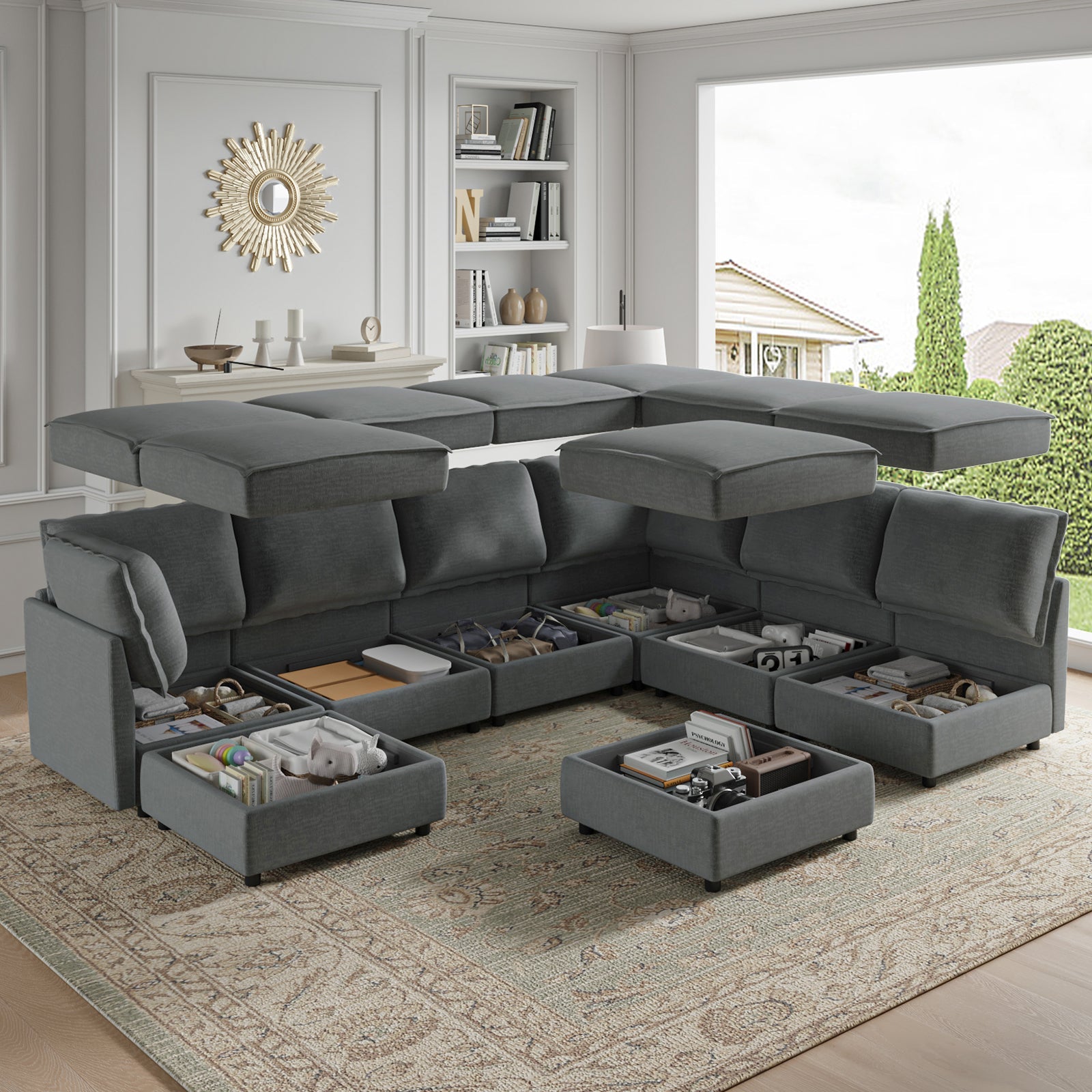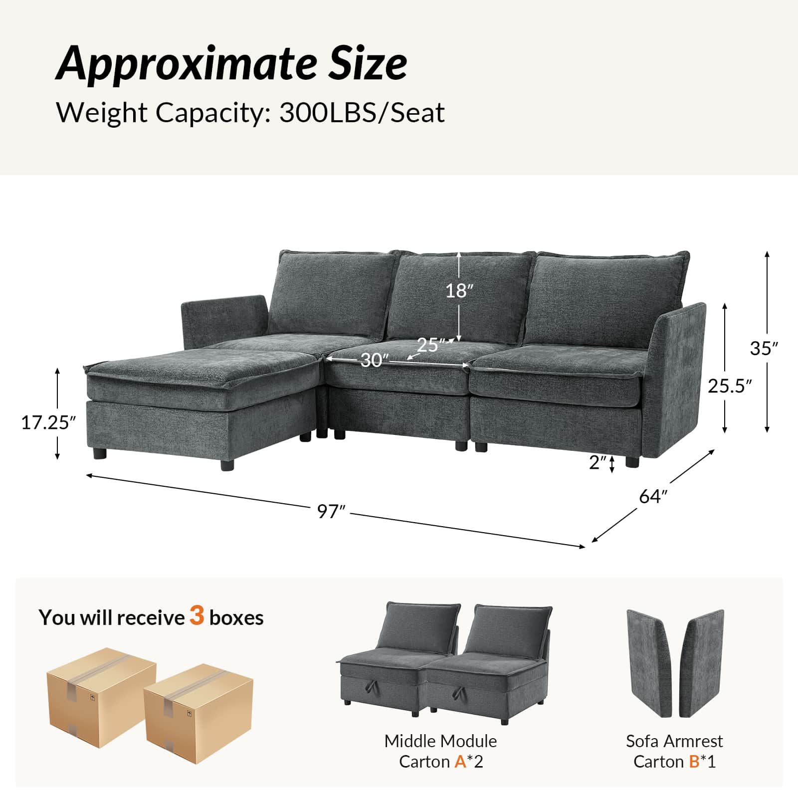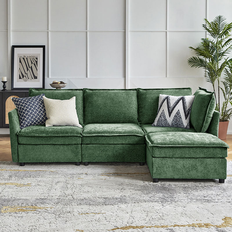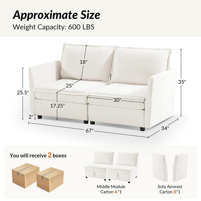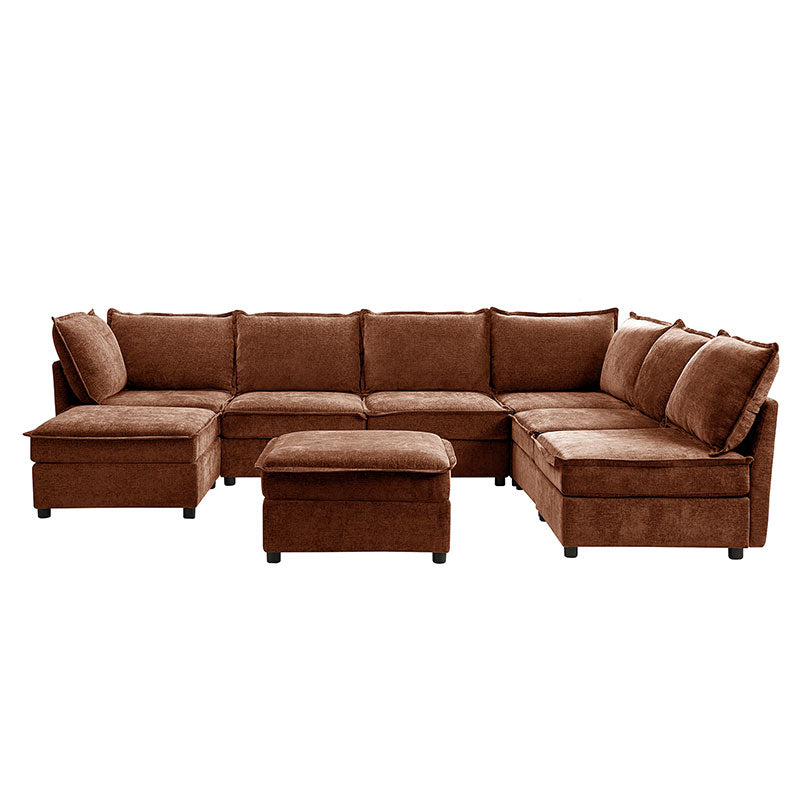 This modular sofa is designed for maximum comfort and versatility. Featuring 1.5x extra-wide seats, it caters specifically to larger individuals and expansive spaces. The soft cushions offer exceptional comfort. Hidden storage compartments under the seats help reduce clutter and provide easy access to everyday items. Its modular design allows you to rearrange the sections to create different living room layouts. Assembly is hassle-free with no tools required, and the oversized sectional sofa's segmented packaging ensures easy transportation. Additionally, the fabric covers are removable, maintaining a fresh and clean look.