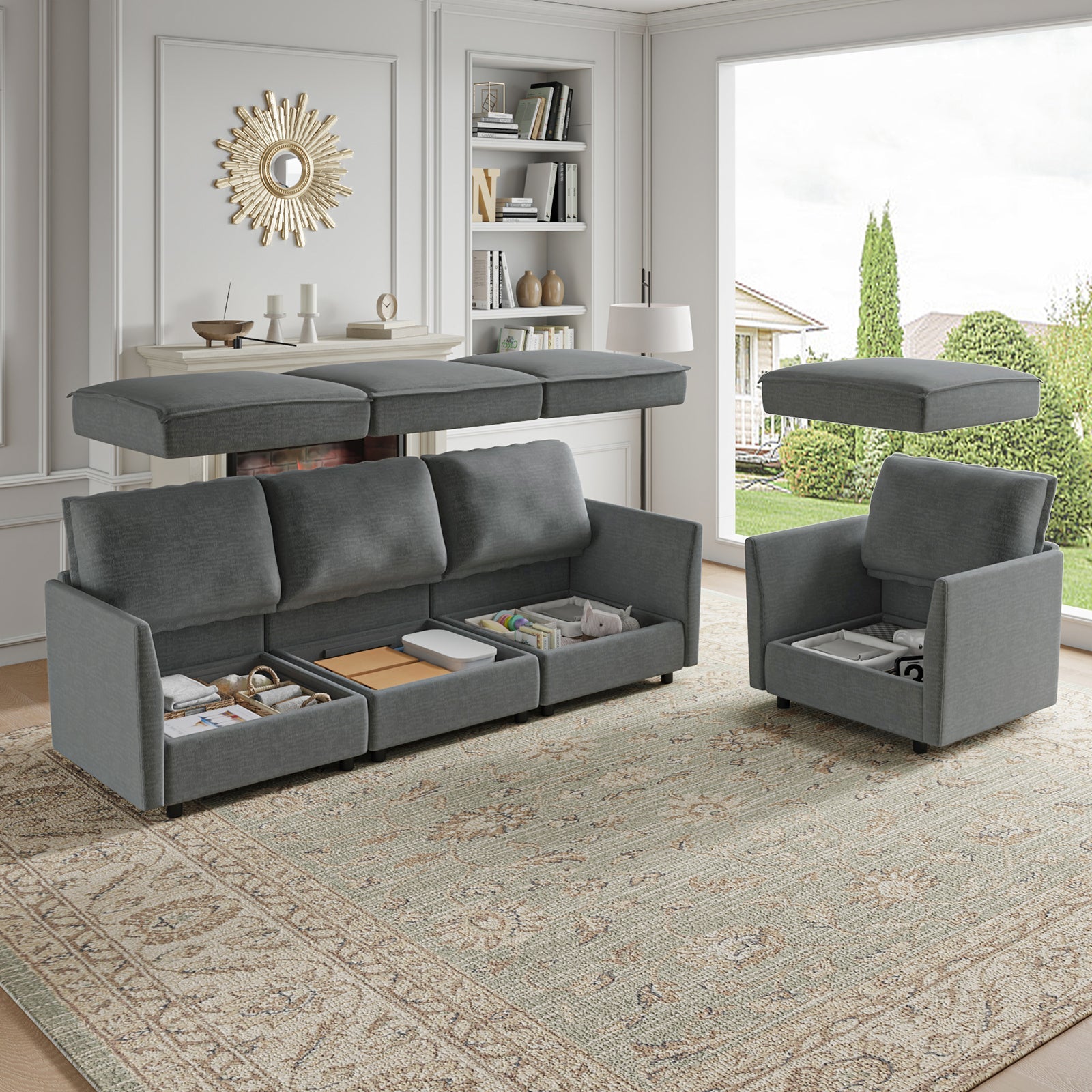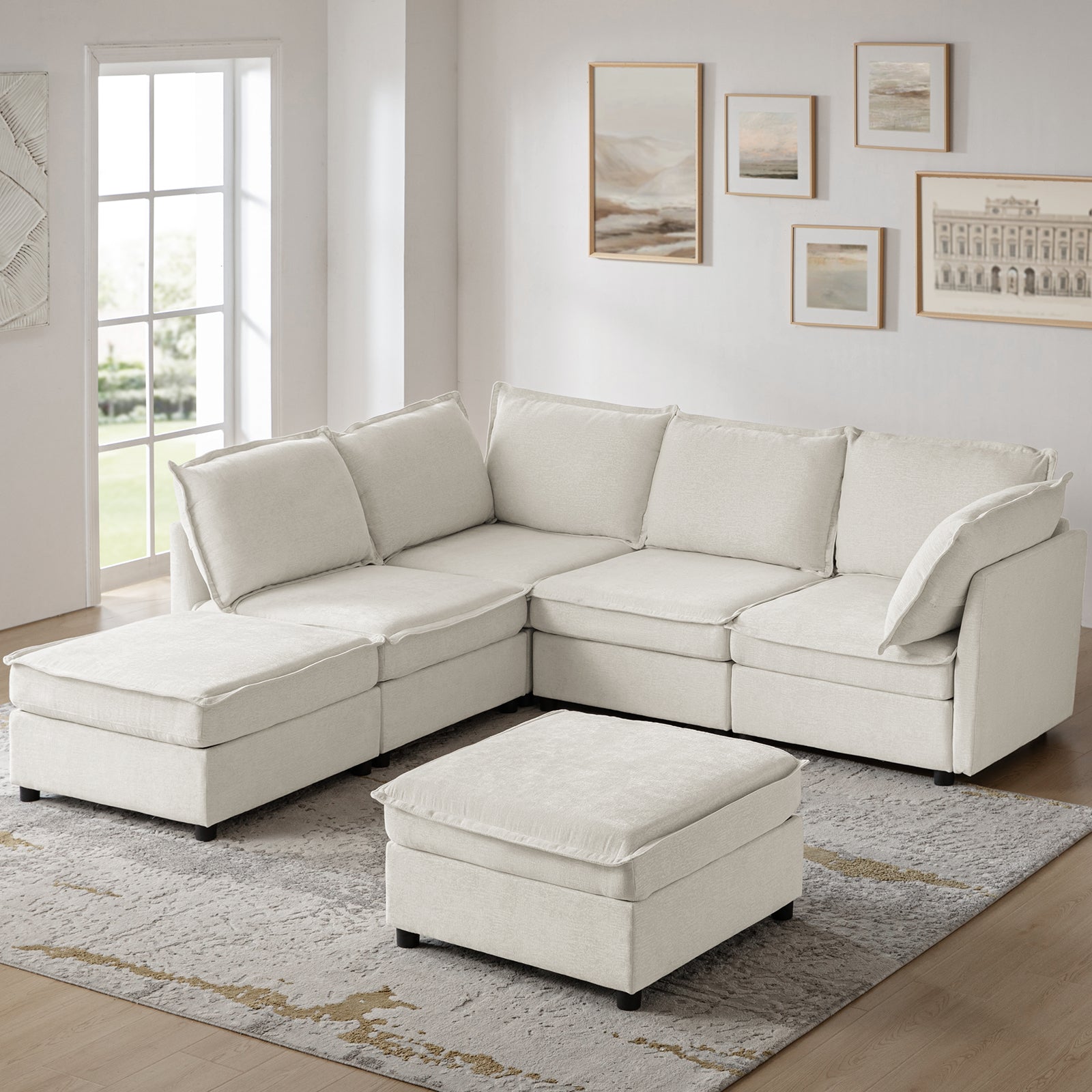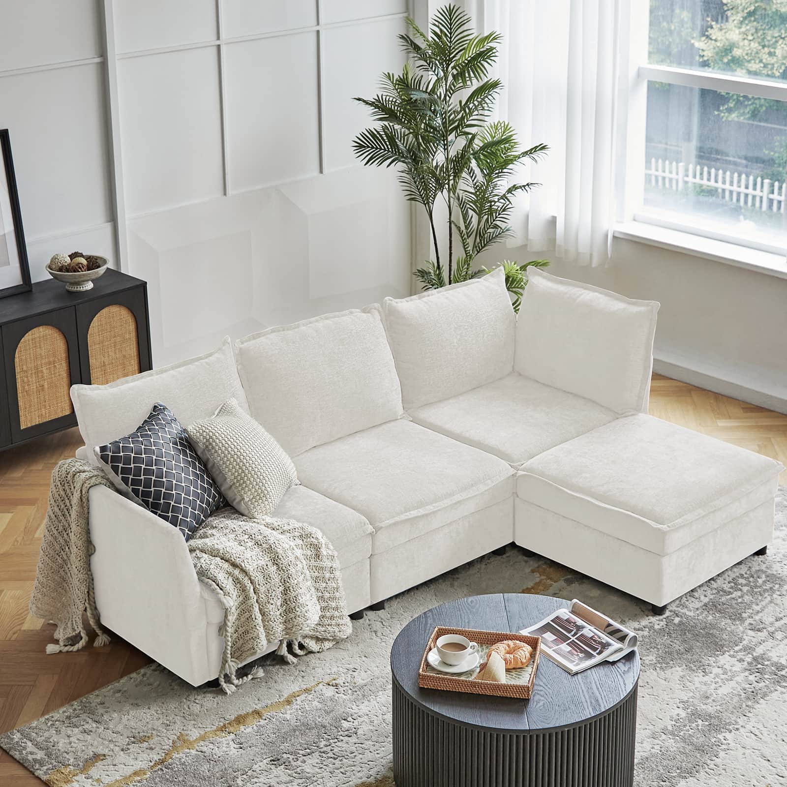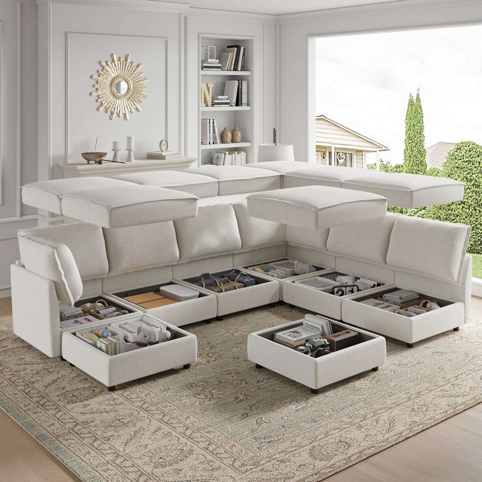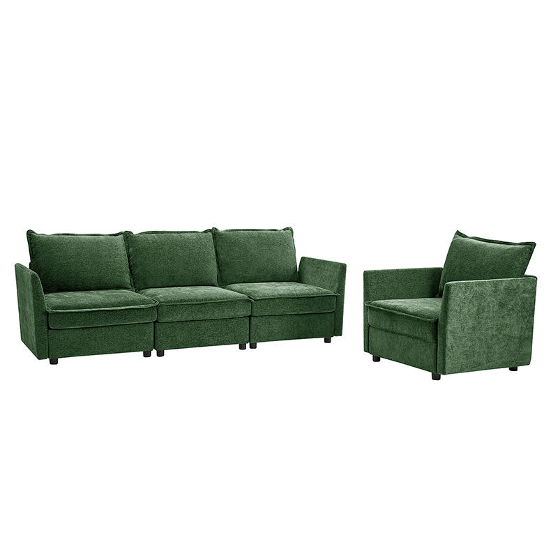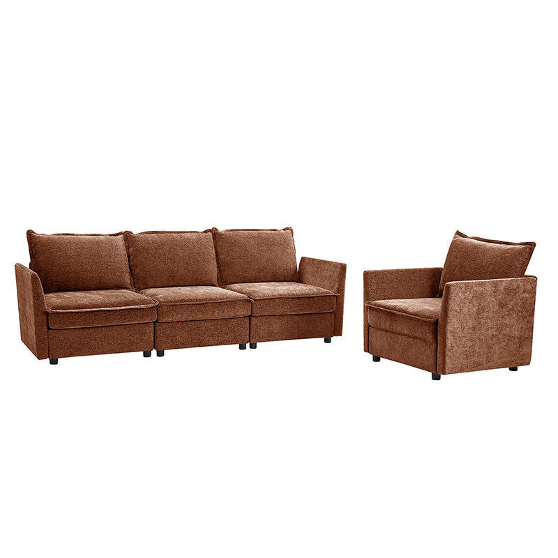 This modular sofa is designed for maximum comfort and versatility. Featuring 1.5x extra-wide seats, it caters specifically to larger individuals and expansive spaces. The soft cushions offer exceptional comfort. Hidden storage compartments under the seats help reduce clutter and provide easy access to everyday items. Its modular design allows you to rearrange the sections to create different living room layouts. Assembly is hassle-free with no tools required, and the oversized sectional sofa's segmented packaging ensures easy transportation. Additionally, the fabric covers are removable, maintaining a fresh and clean look.