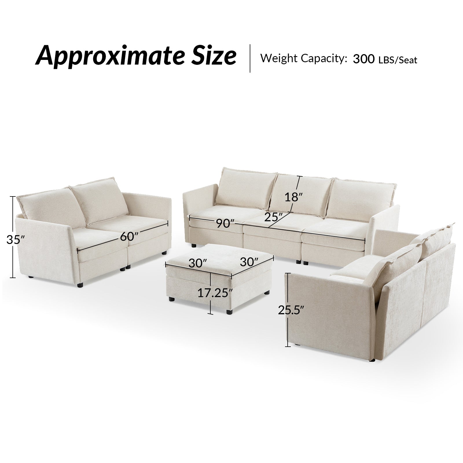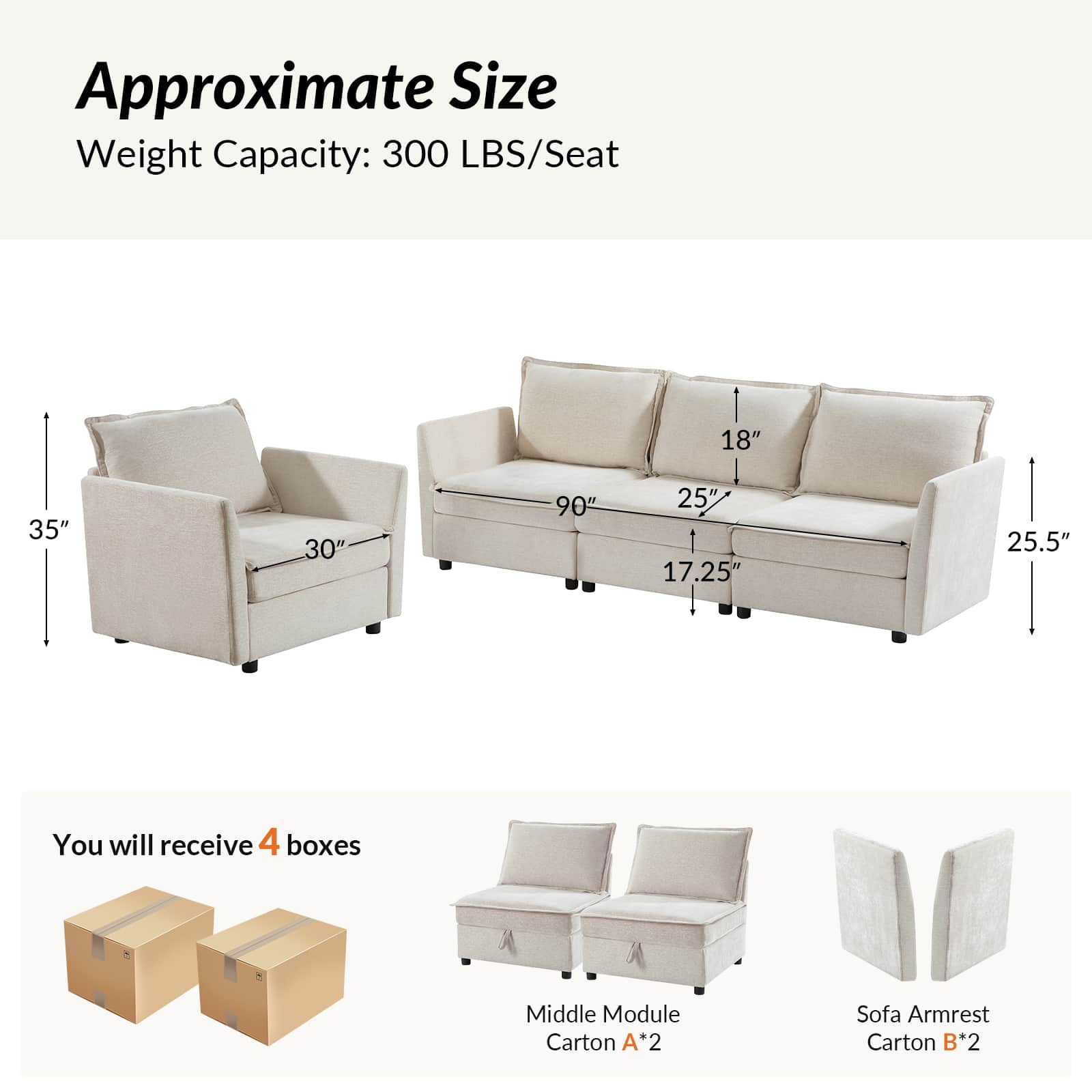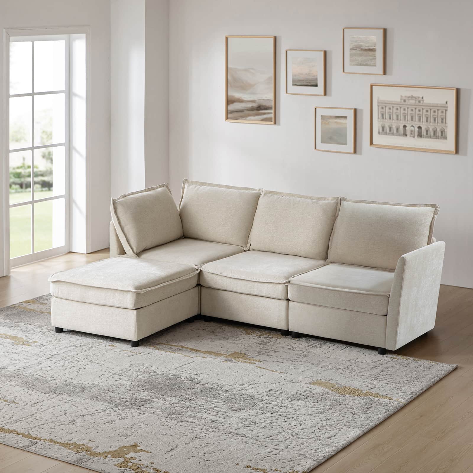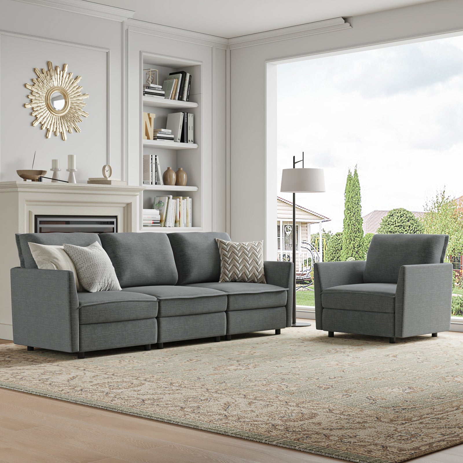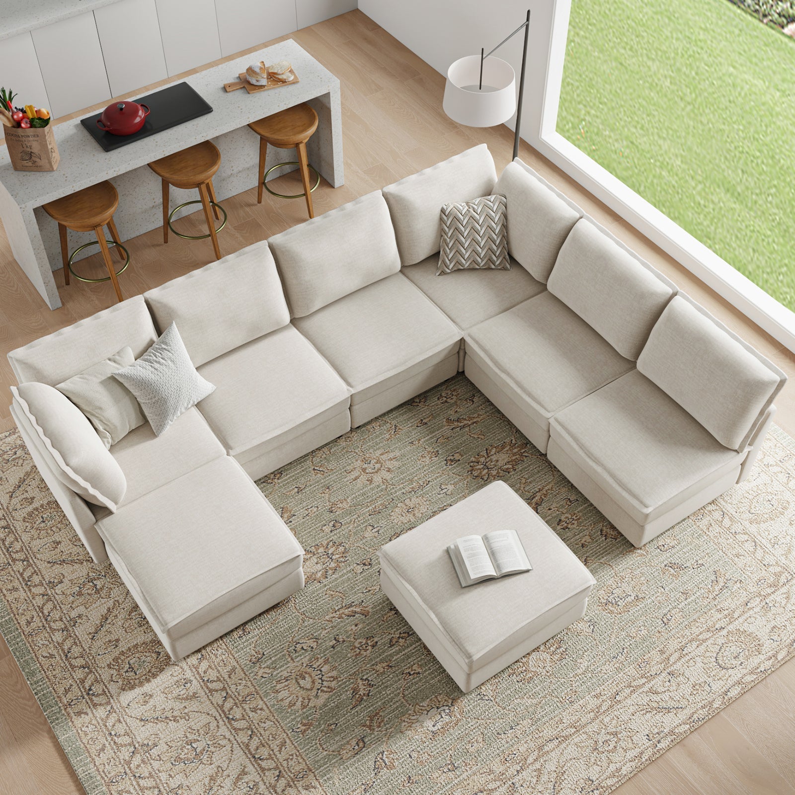 This modular sofa is designed for maximum comfort and versatility. Featuring 1.5x extra-wide seats, it caters specifically to larger individuals and expansive spaces. The soft cushions offer exceptional comfort. Hidden storage compartments under the seats help reduce clutter and provide easy access to everyday items. Its modular design allows you to rearrange the sections to create different living room layouts. Assembly is hassle-free with no tools required, and the oversized sectional sofa's segmented packaging ensures easy transportation. Additionally, the fabric covers are removable, maintaining a fresh and clean look.