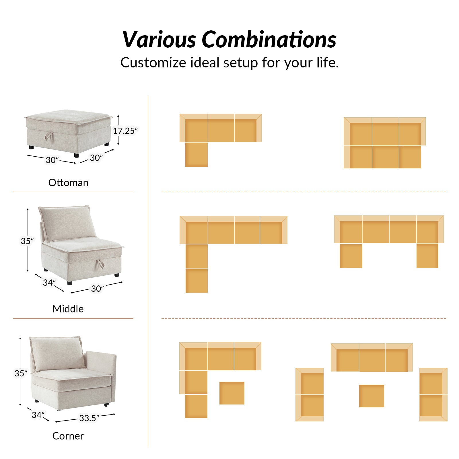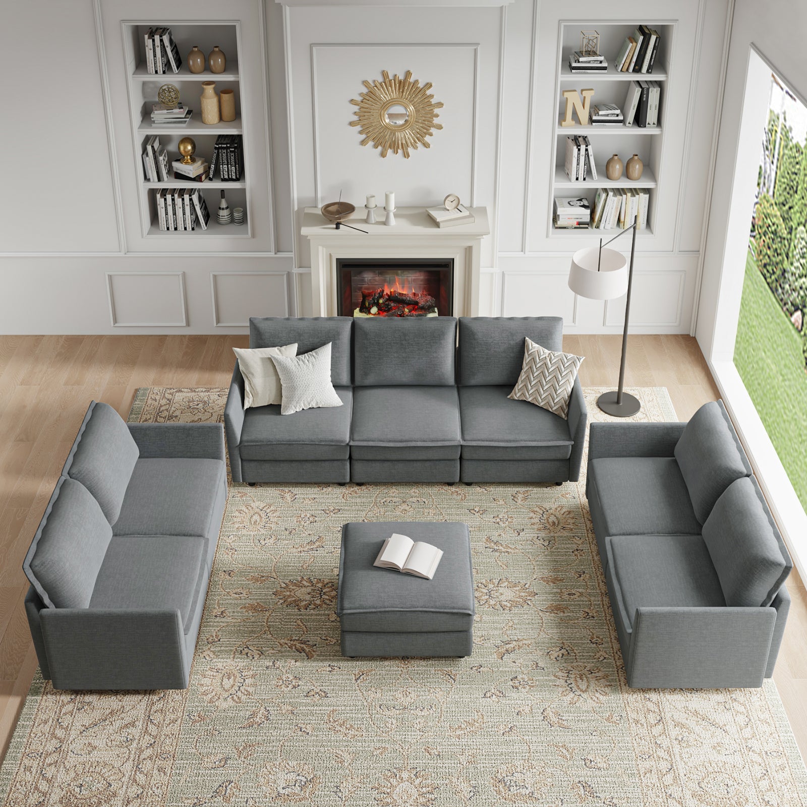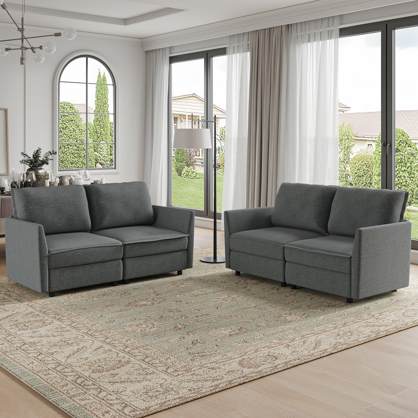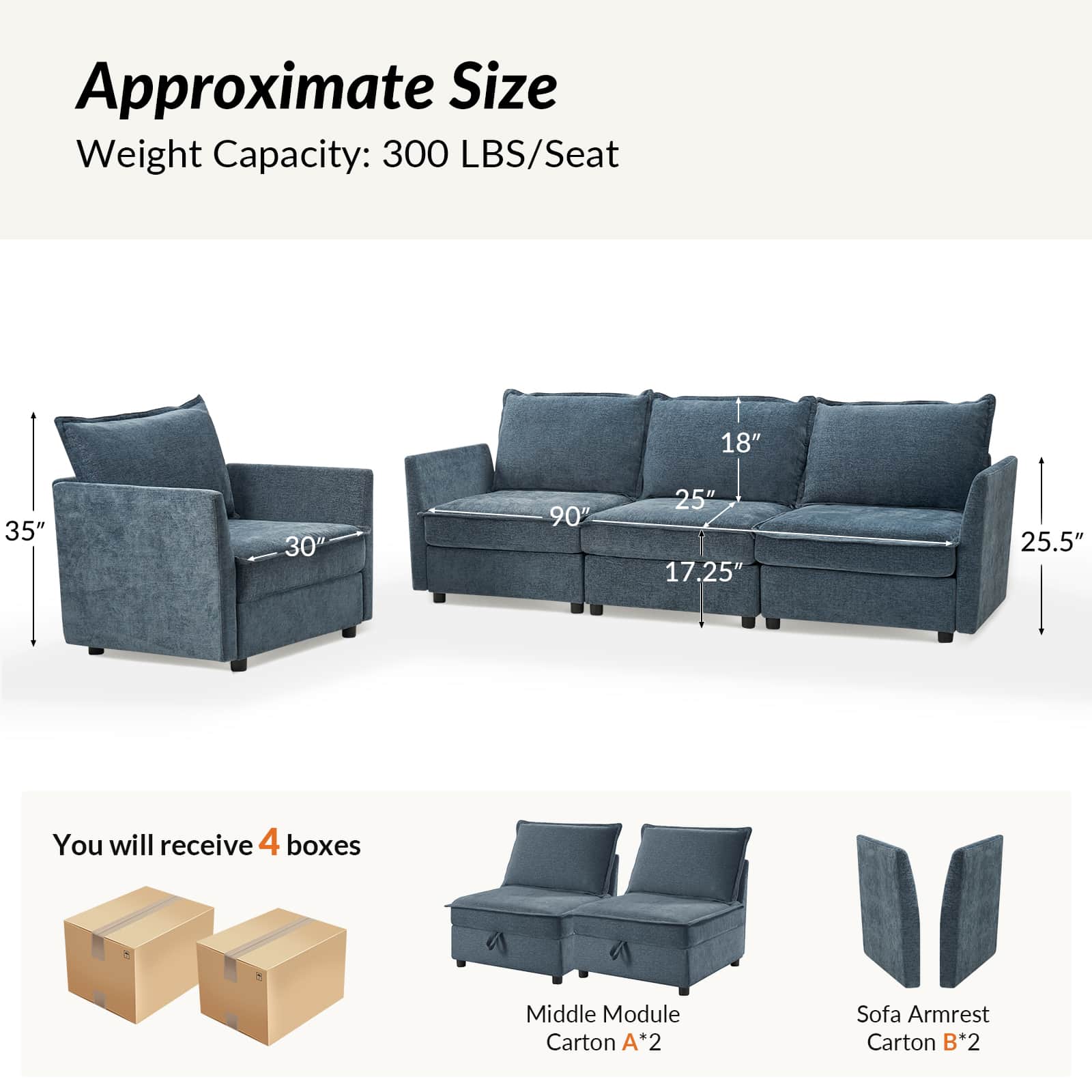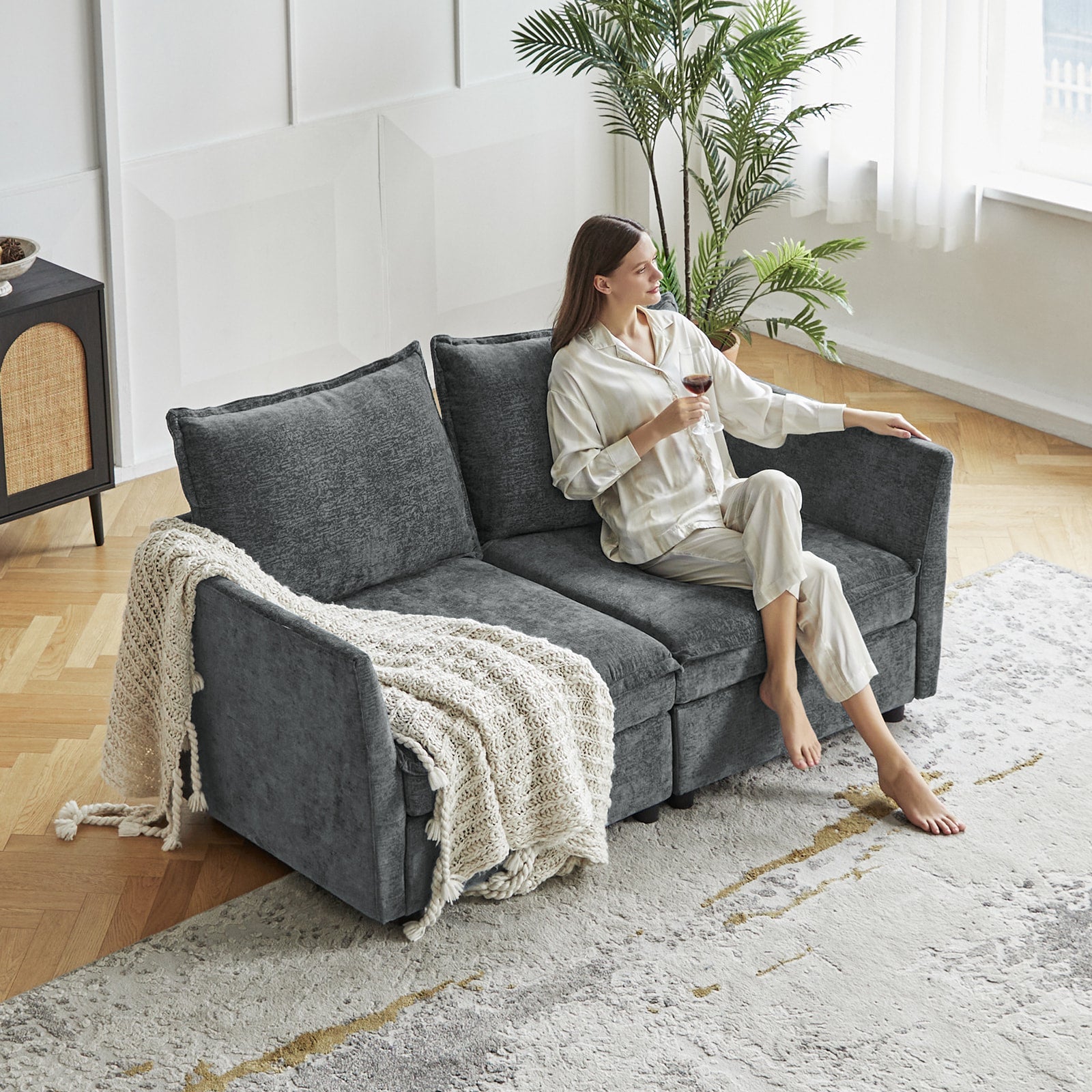 This modular sofa is designed for maximum comfort and versatility. Featuring 1.5x extra-wide seats, it caters specifically to larger individuals and expansive spaces. The soft cushions offer exceptional comfort. Hidden storage compartments under the seats help reduce clutter and provide easy access to everyday items. Its modular design allows you to rearrange the sections to create different living room layouts. Assembly is hassle-free with no tools required, and the oversized sectional sofa's segmented packaging ensures easy transportation. Additionally, the fabric covers are removable, maintaining a fresh and clean look.