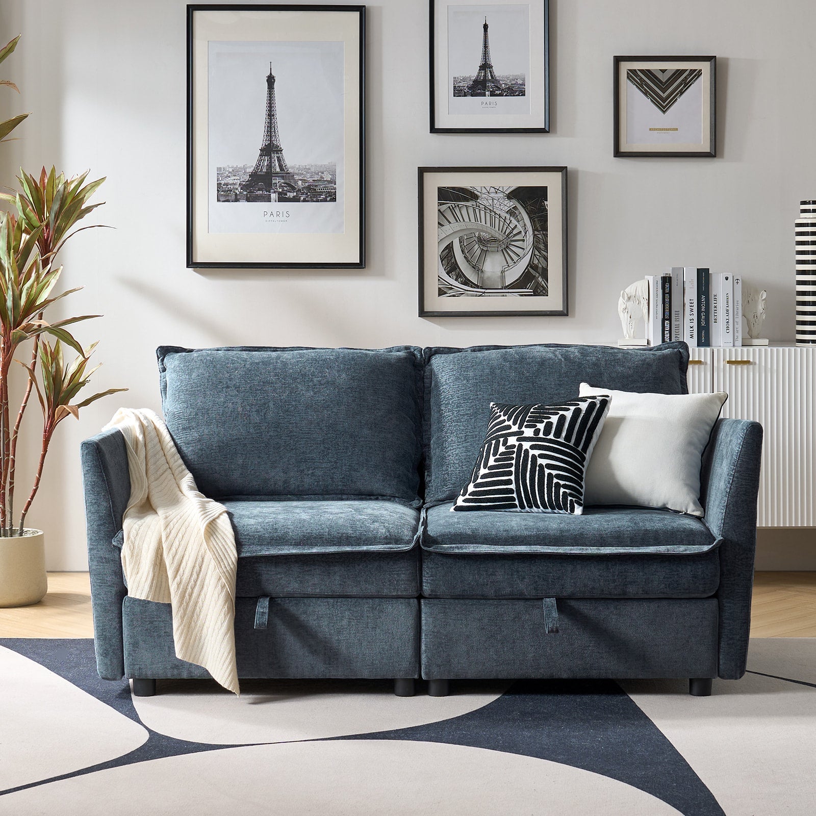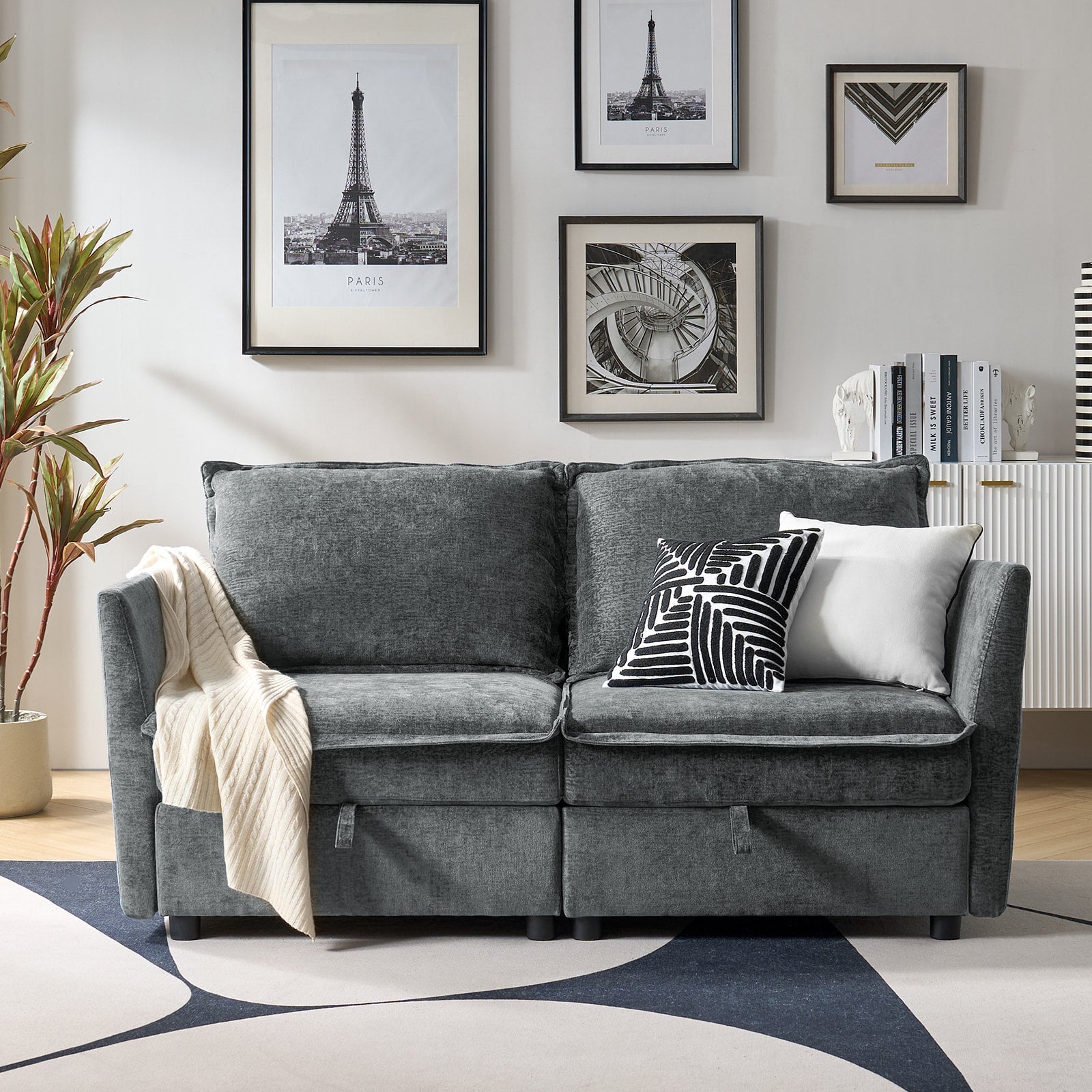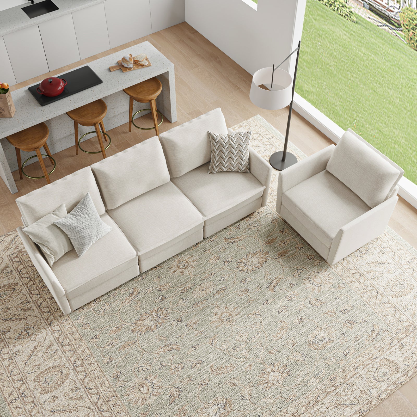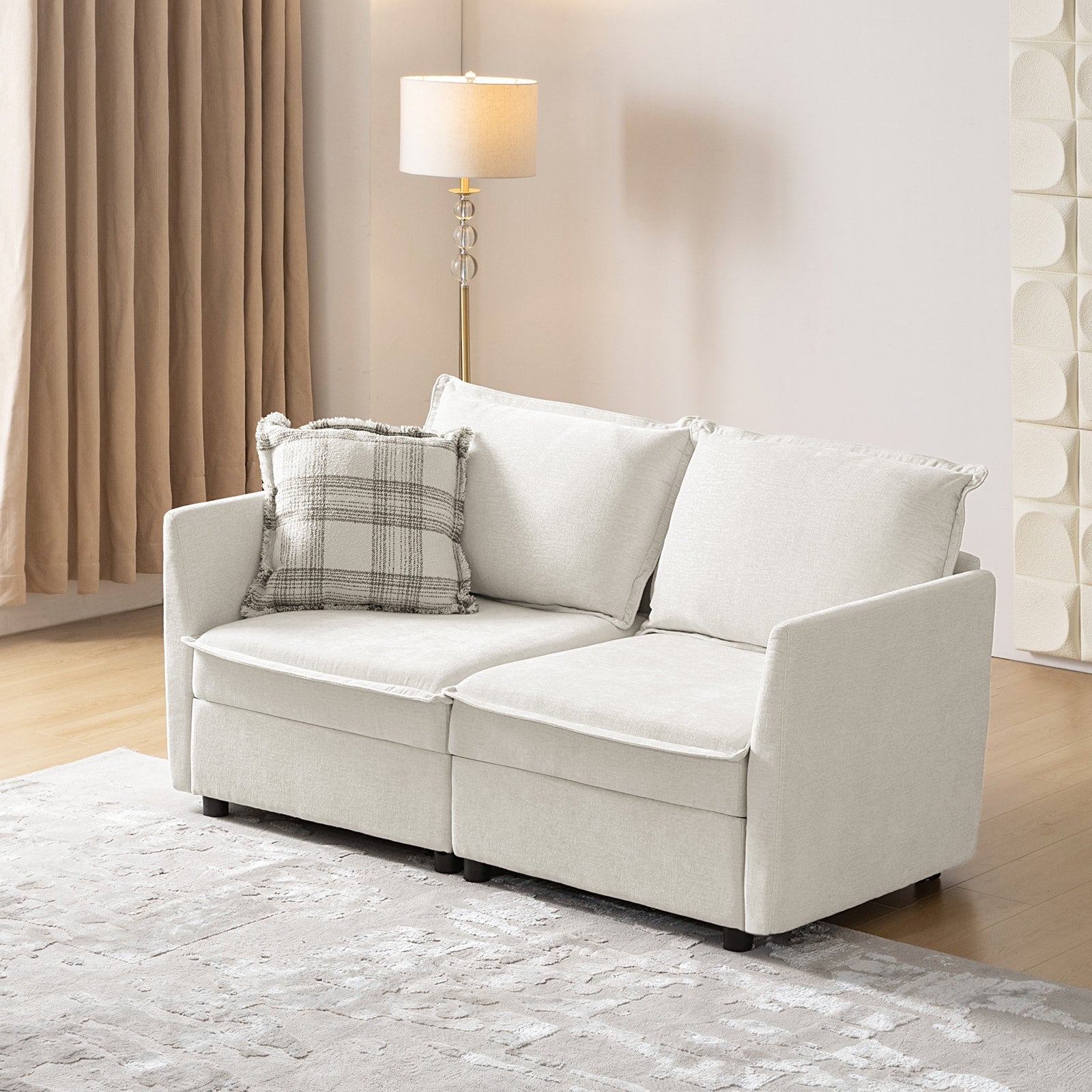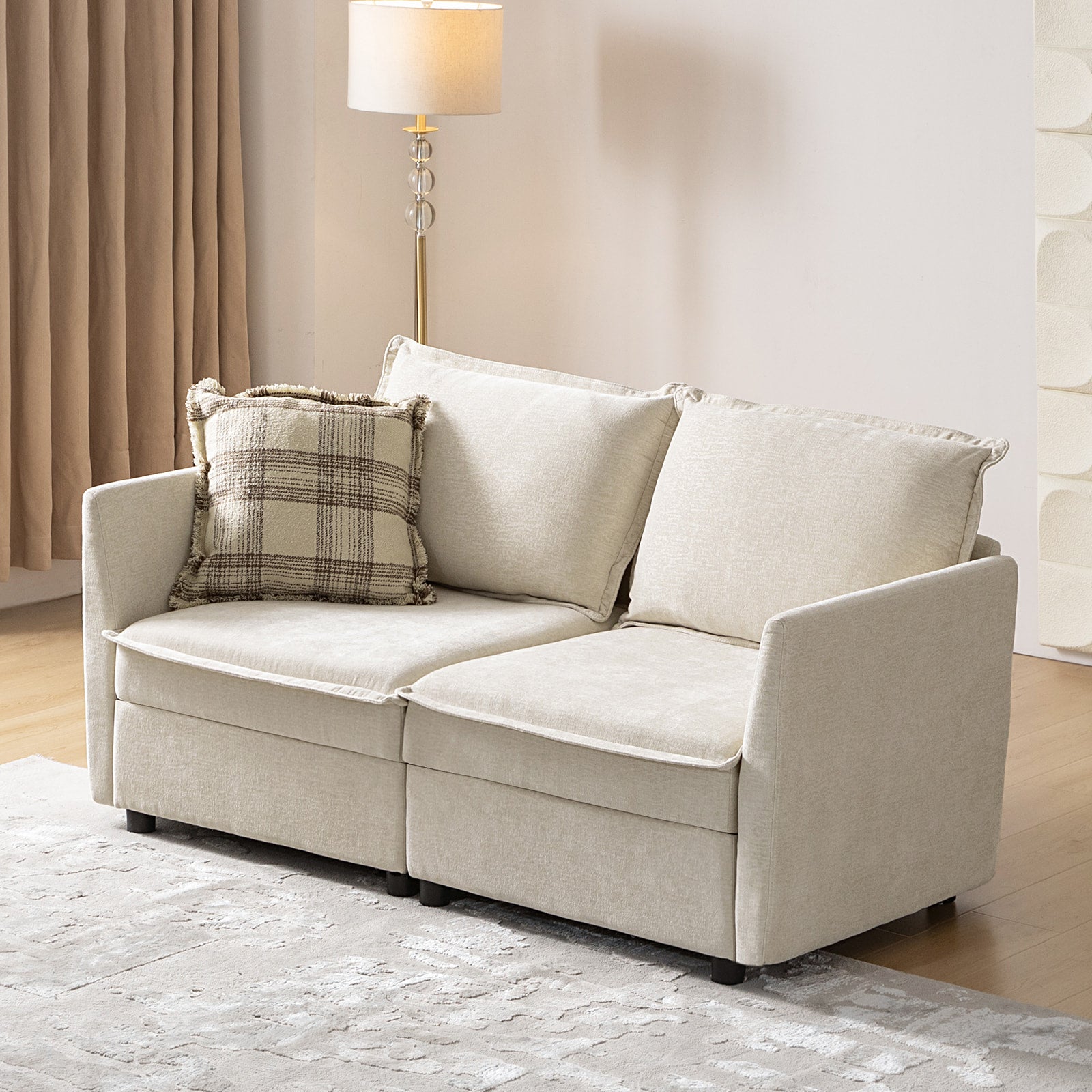 This modular sofa is designed for maximum comfort and versatility. Featuring 1.5x extra-wide seats, it caters specifically to larger individuals and expansive spaces. The soft cushions offer exceptional comfort. Hidden storage compartments under the seats help reduce clutter and provide easy access to everyday items. Its modular design allows you to rearrange the sections to create different living room layouts. Assembly is hassle-free with no tools required, and the oversized sectional sofa's segmented packaging ensures easy transportation. Additionally, the fabric covers are removable, maintaining a fresh and clean look.