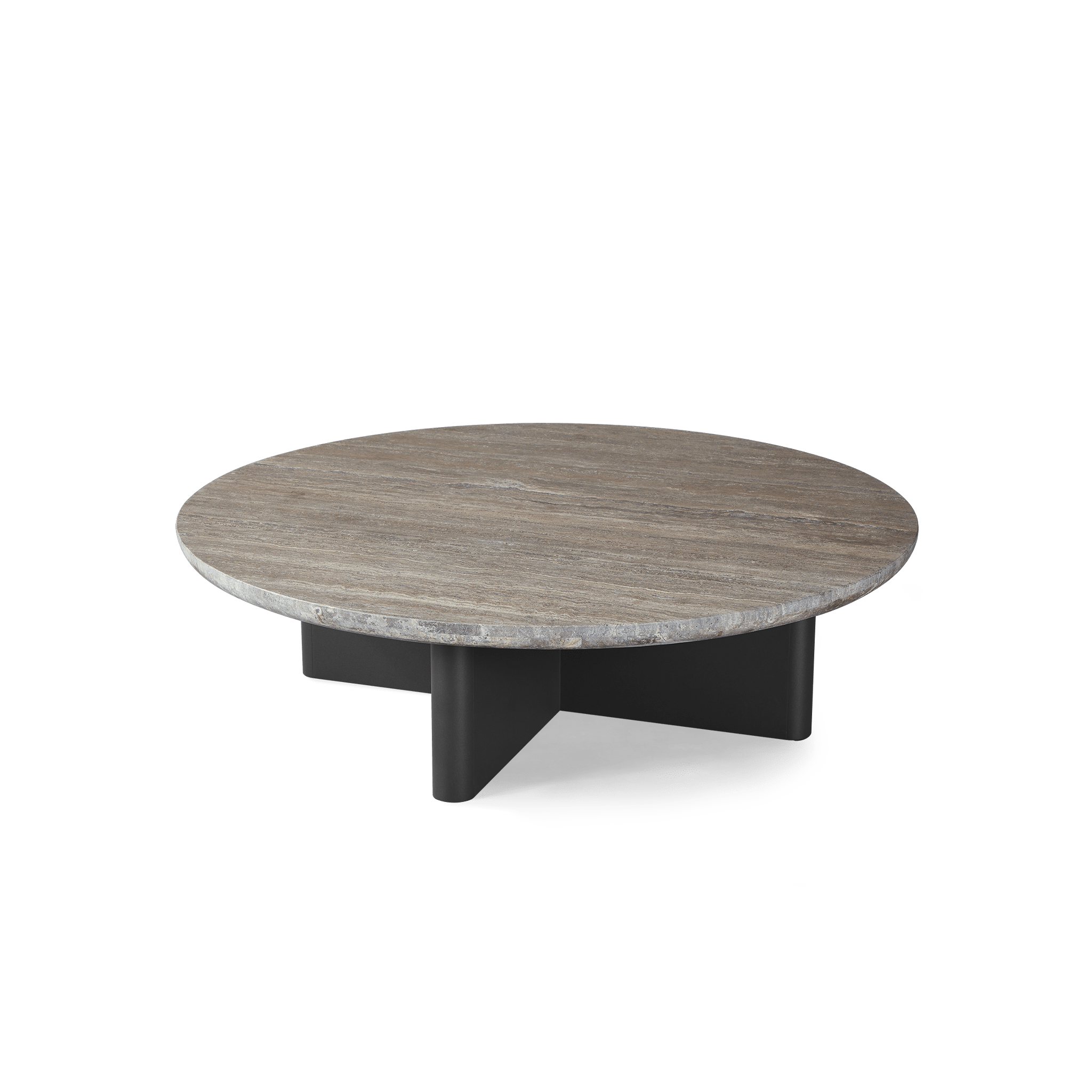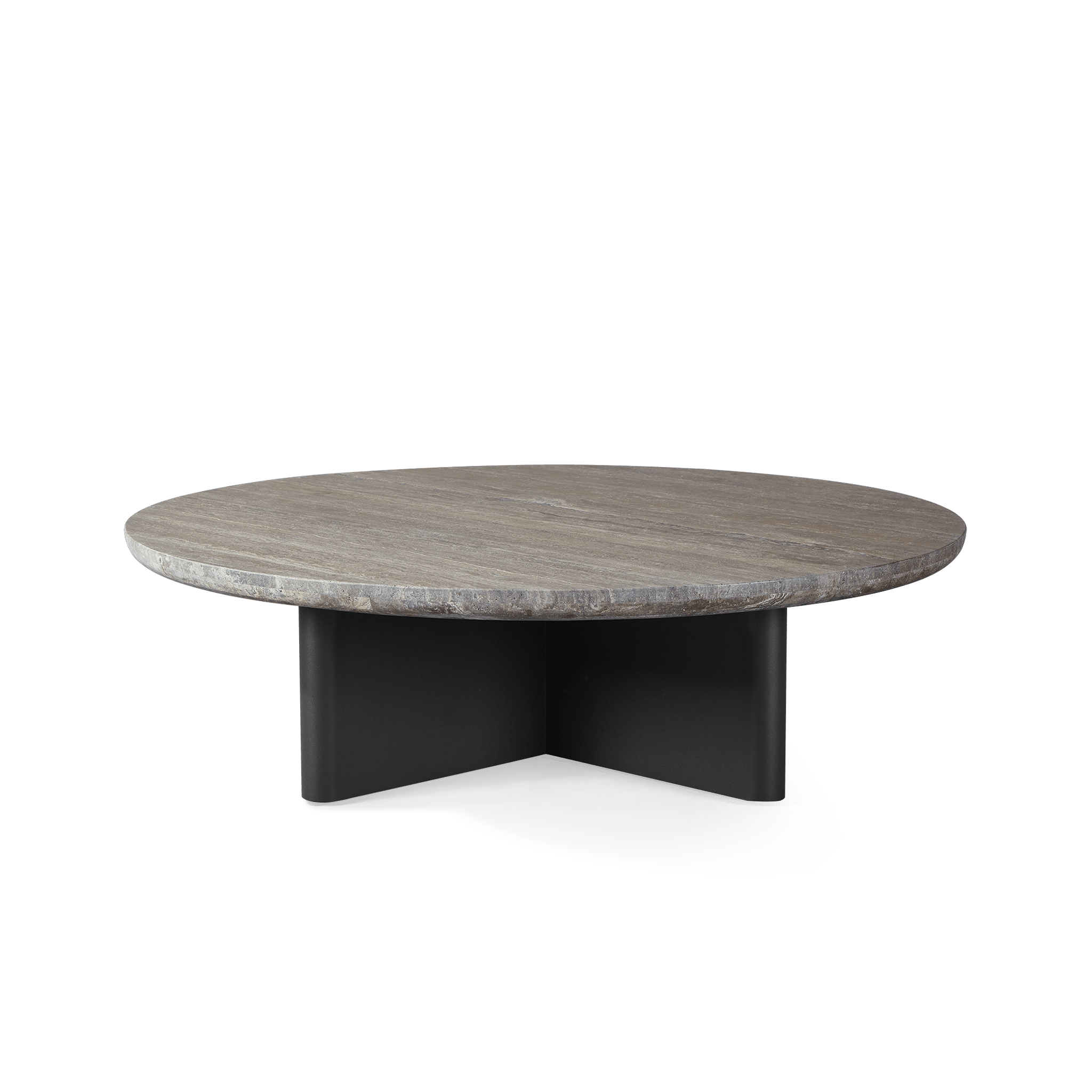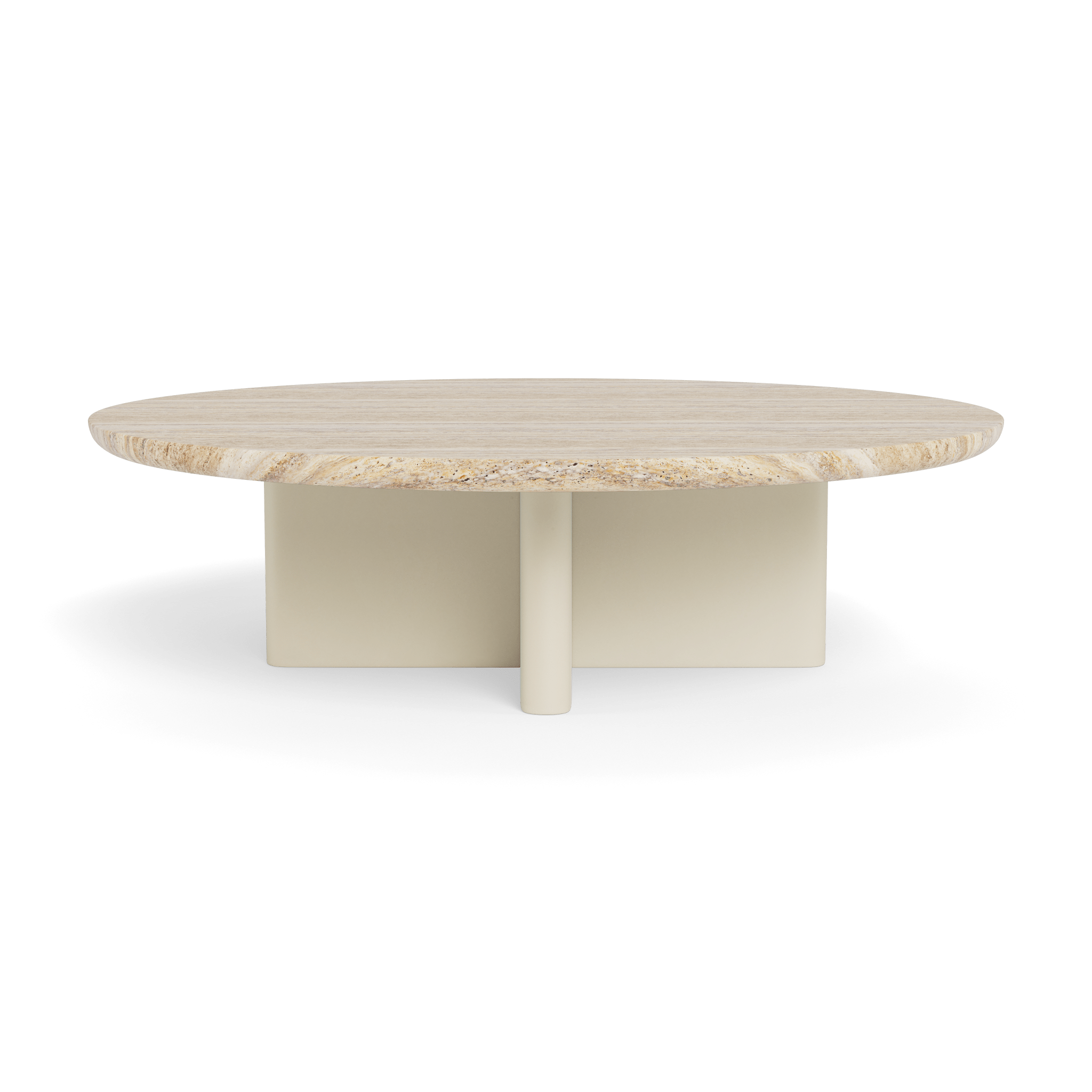 Our Victoria collection balances sculptural curves and right angles for true simplicity of proportion. The Victoria Round Stone Coffee Table was designed as the perfect anchor for your seating set — featuring a stunning X–shaped base in powder coated extruded aluminum supporting a round travertine stone top. Special details like curved edges and a half–bull nose add extra refinement. A classic round shape made to invite conversation, this contemporary outdoor coffee table brings harmony to a variety of spaces.