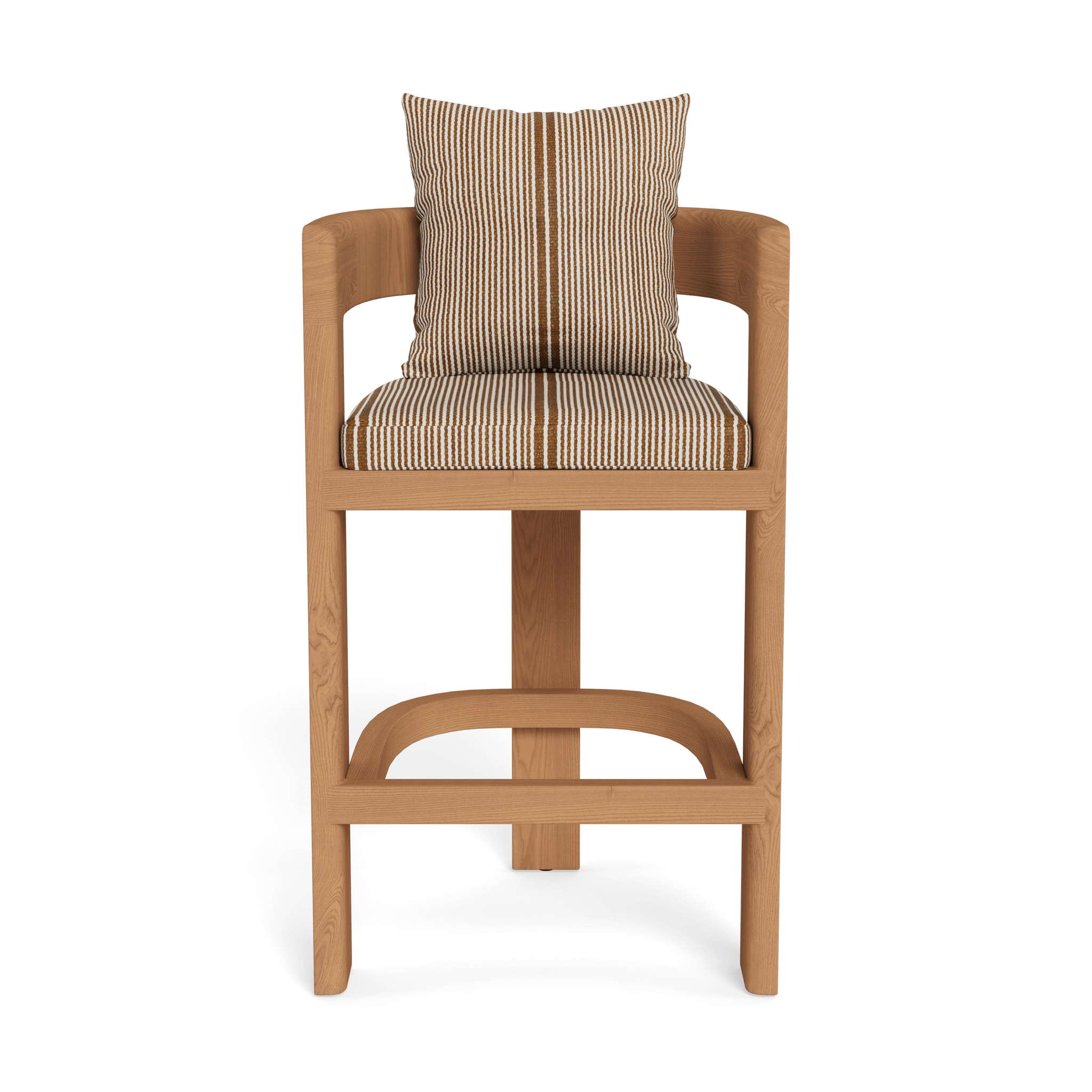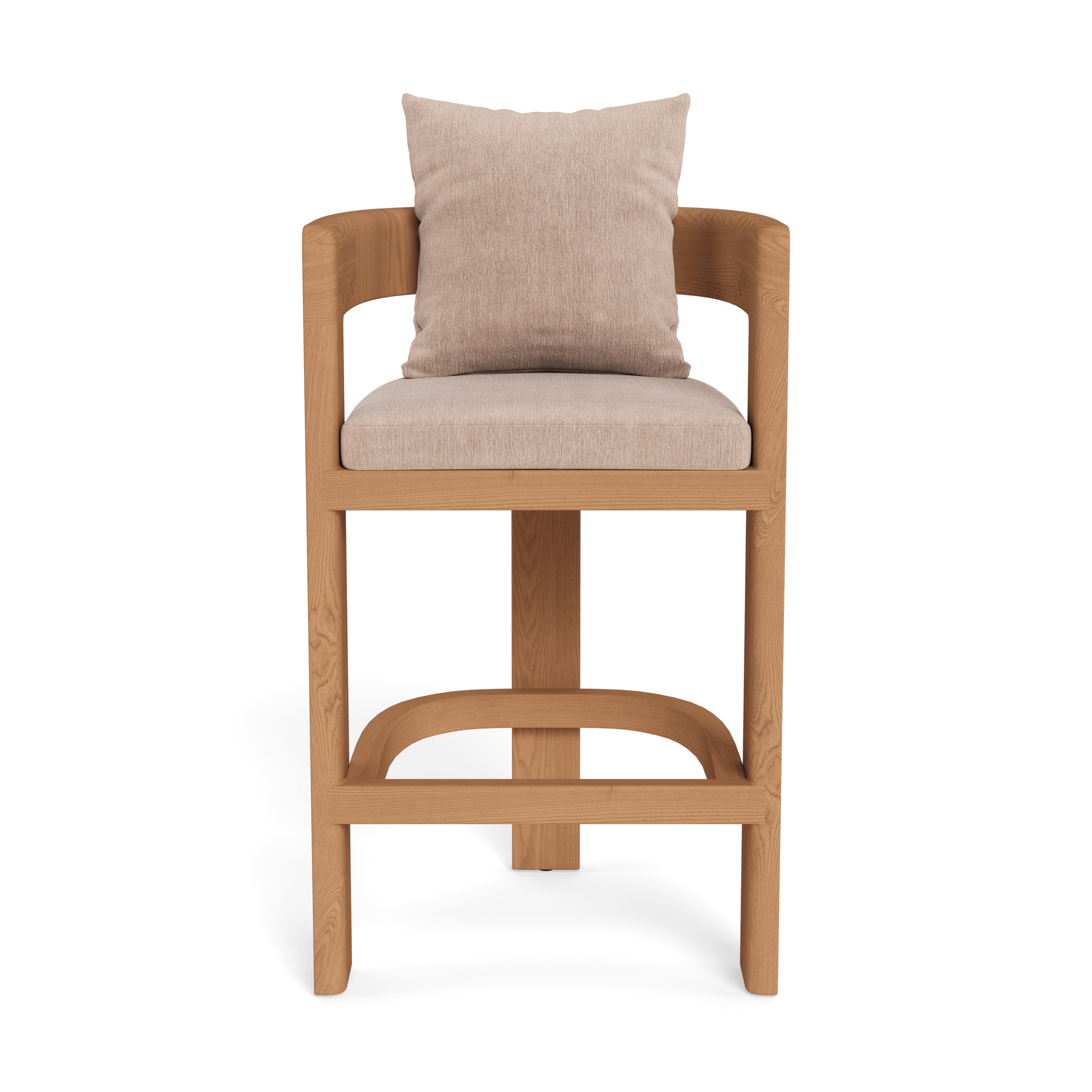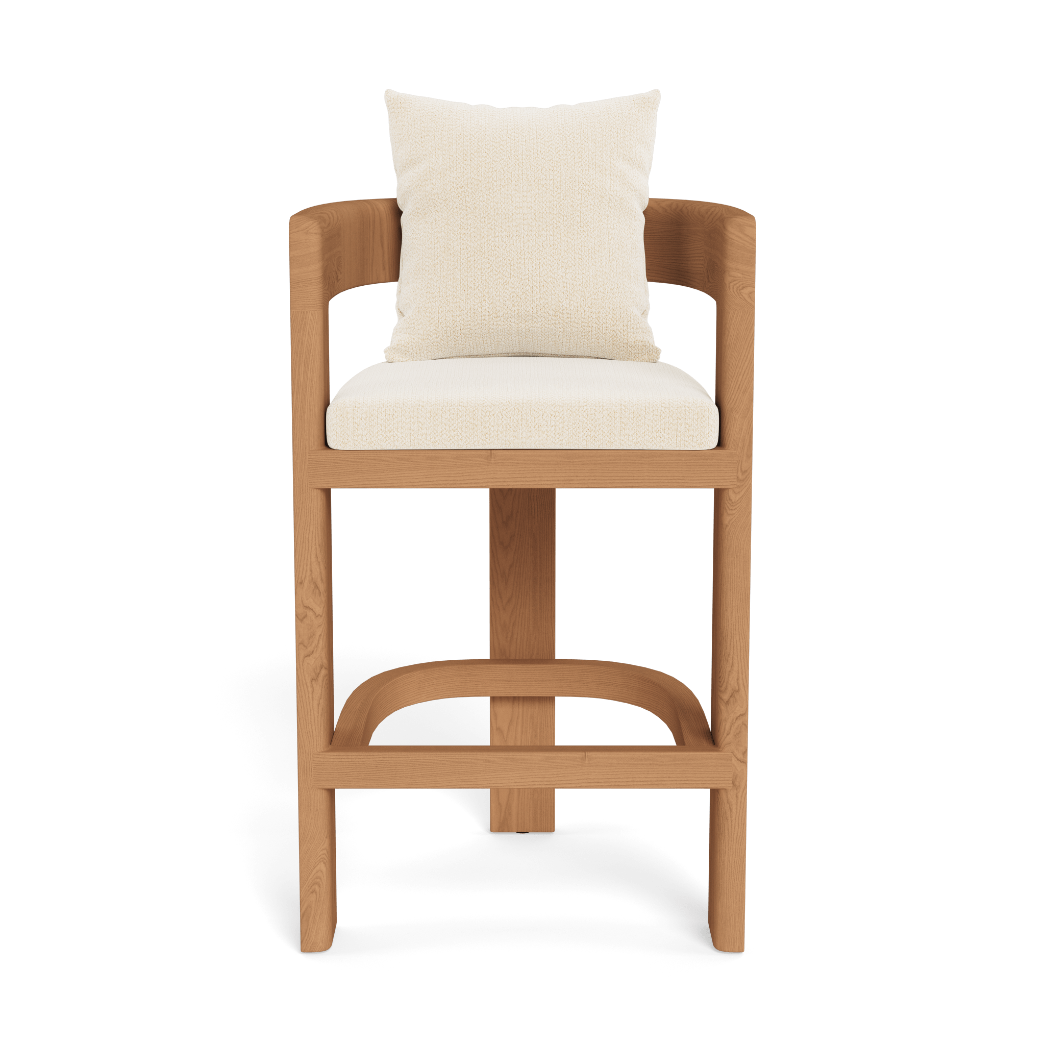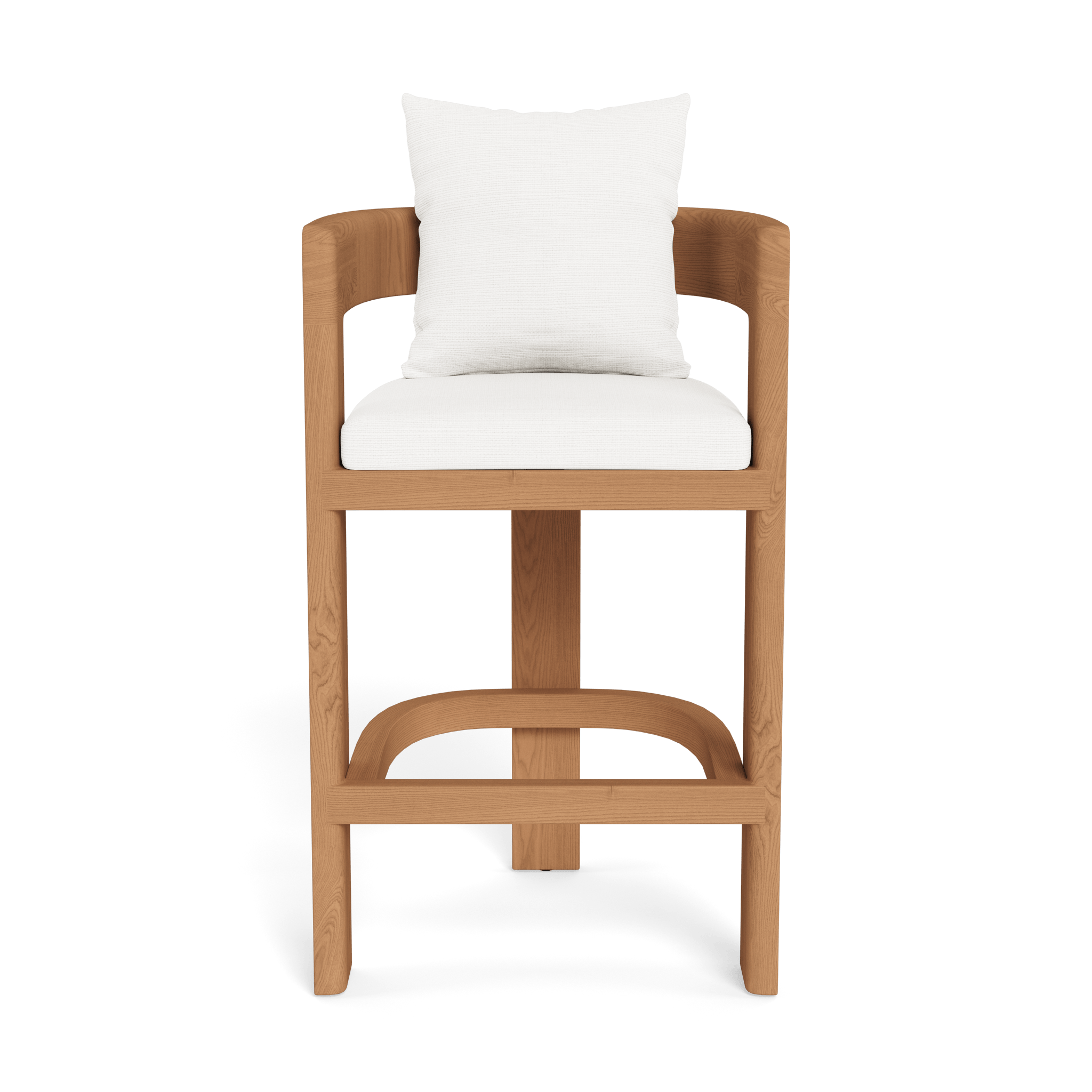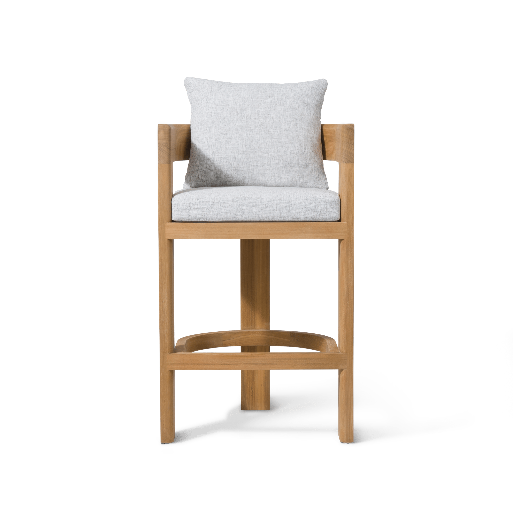 Our Victoria collection balances sculptural curves and right angles for true simplicity of proportion. The Victoria Teak Bar Stool completes your outdoor entertaining experience — featuring solid Indonesian teak tripod construction made to age gracefully with time. With a barrel back design and easy cushions for a comfortable sit, this contemporary outdoor counter stool brings harmony to a variety of spaces. Available in counter and dining heights.