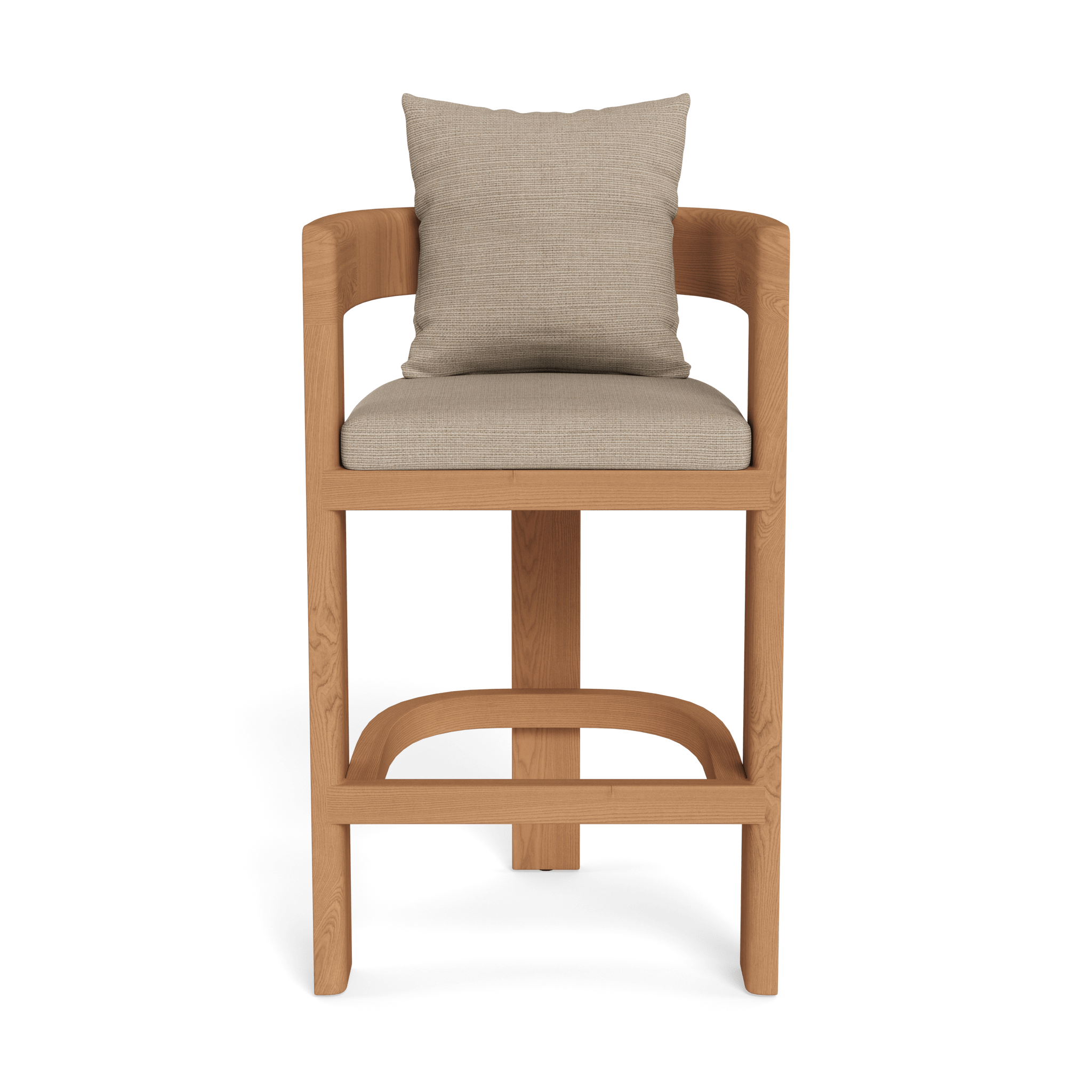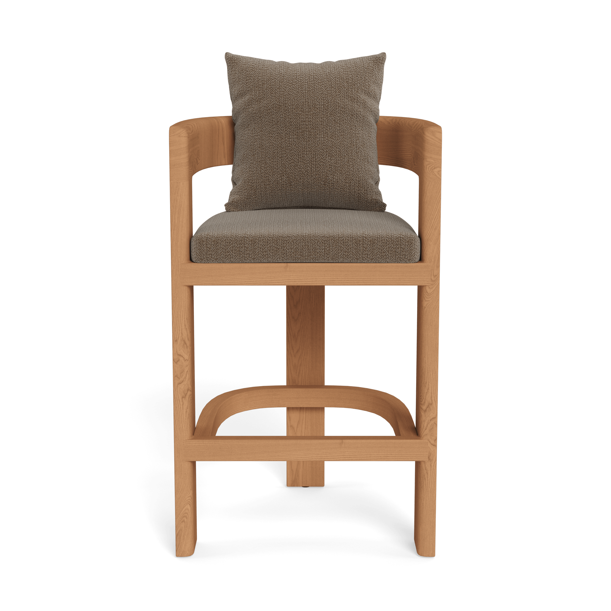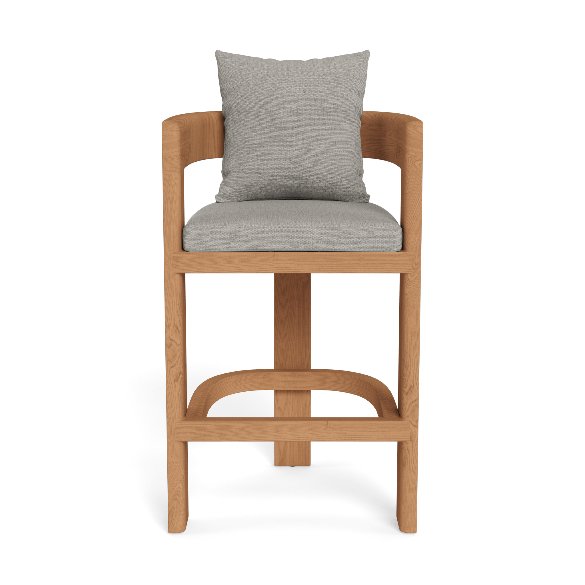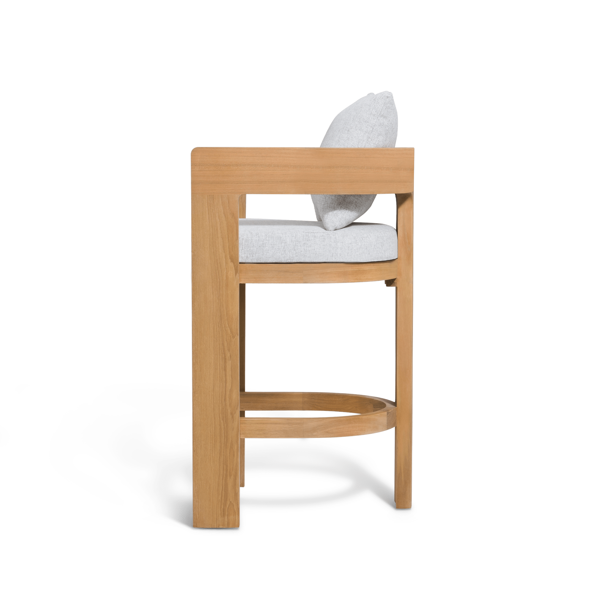 Our Victoria collection balances sculptural curves and right angles for true simplicity of proportion. The Victoria Teak Bar Stool completes your outdoor entertaining experience — featuring solid Indonesian teak tripod construction made to age gracefully with time. With a barrel back design and easy cushions for a comfortable sit, this contemporary outdoor counter stool brings harmony to a variety of spaces. Available in counter and dining heights.