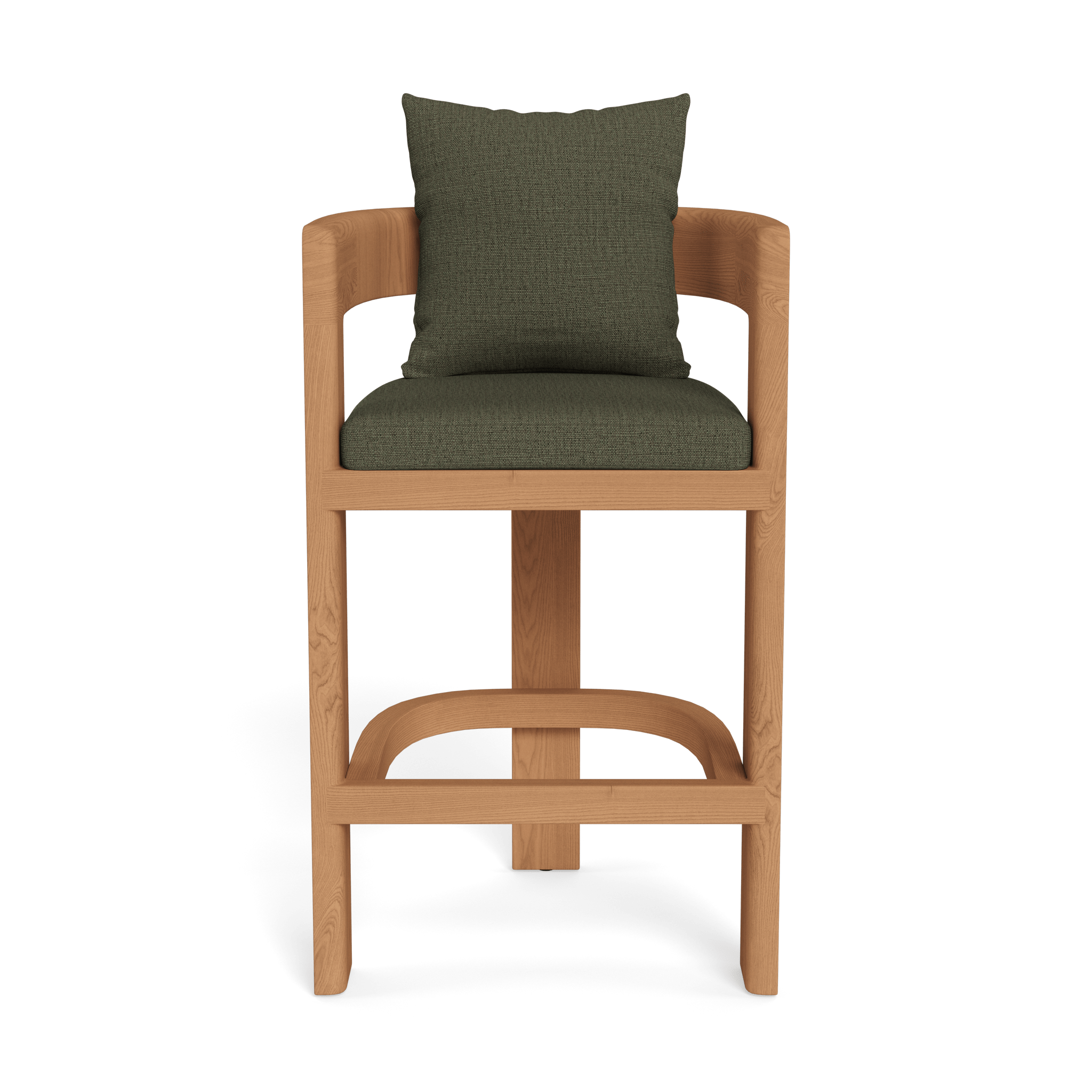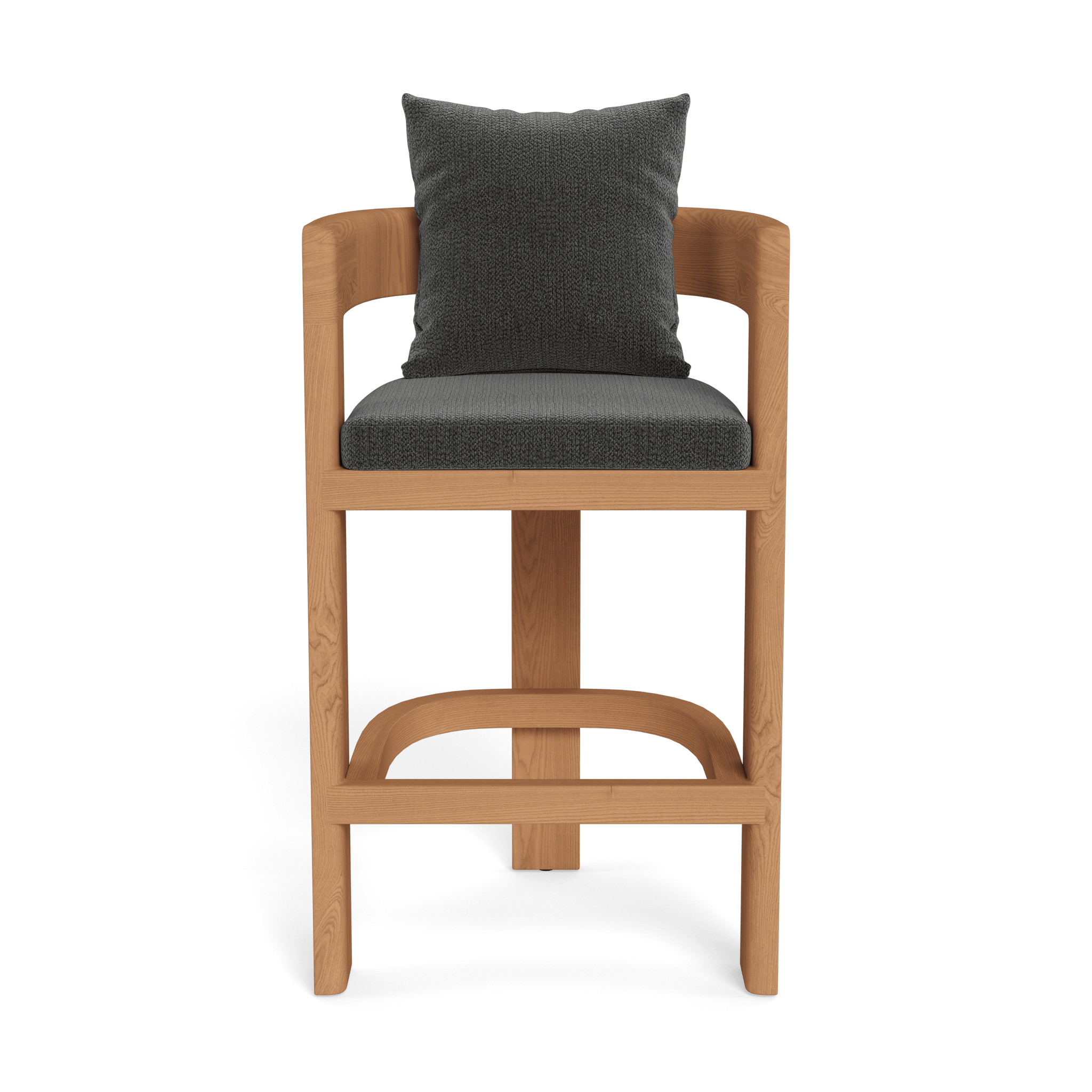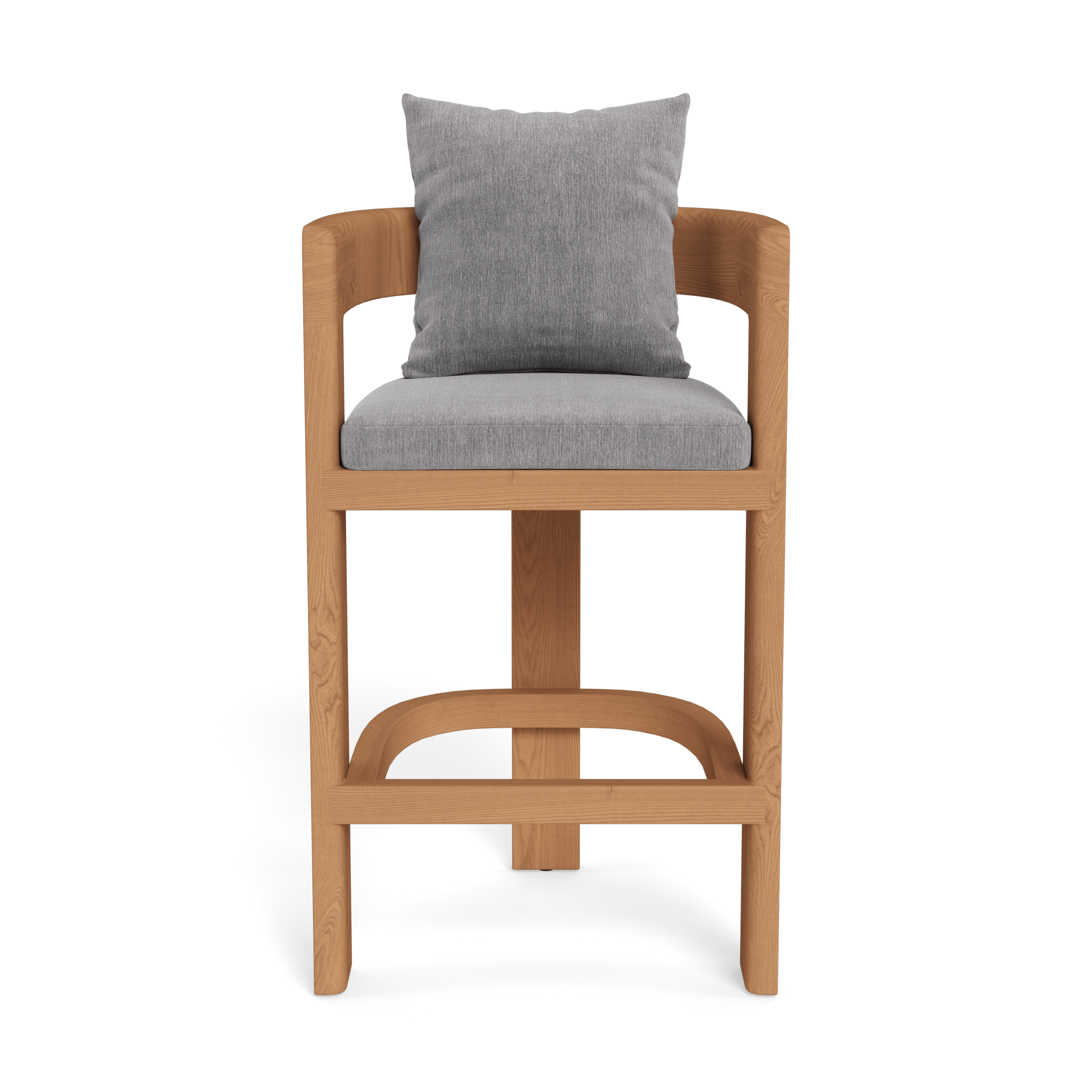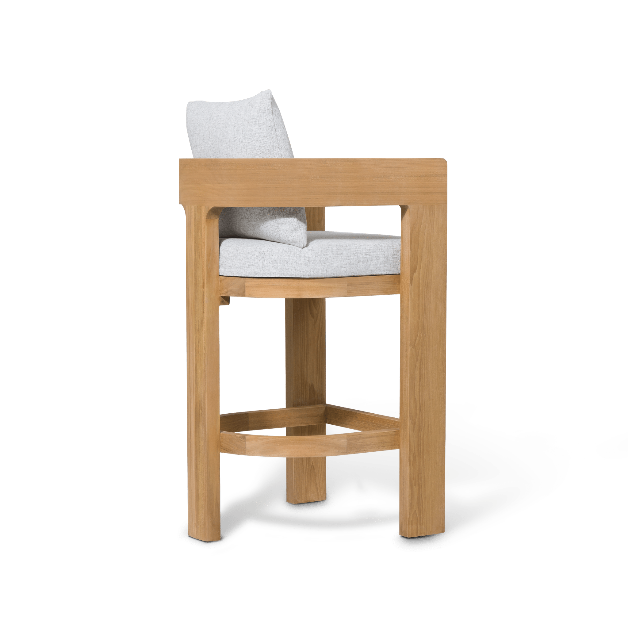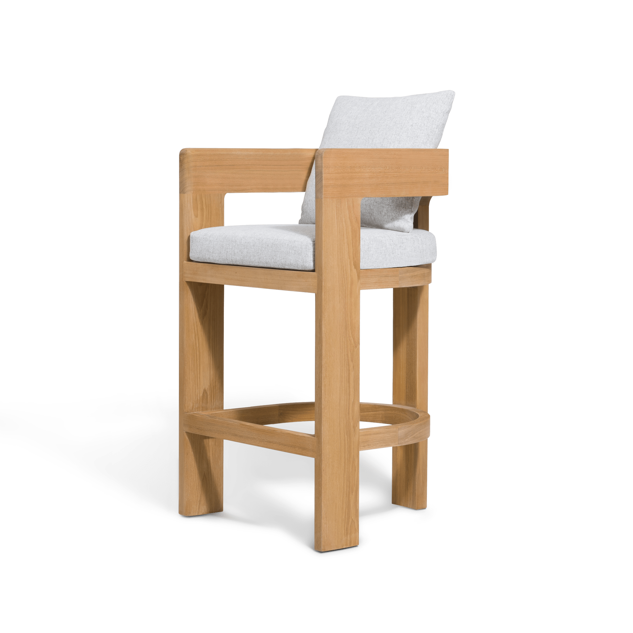 Our Victoria collection balances sculptural curves and right angles for true simplicity of proportion. The Victoria Teak Bar Stool completes your outdoor entertaining experience — featuring solid Indonesian teak tripod construction made to age gracefully with time. With a barrel back design and easy cushions for a comfortable sit, this contemporary outdoor counter stool brings harmony to a variety of spaces. Available in counter and dining heights.