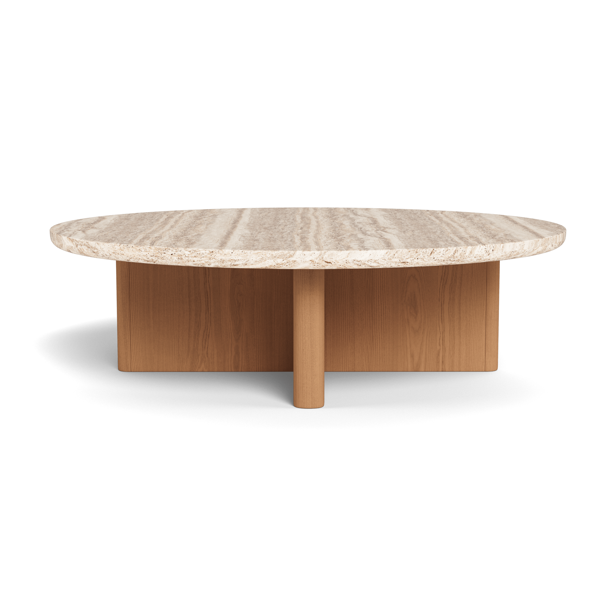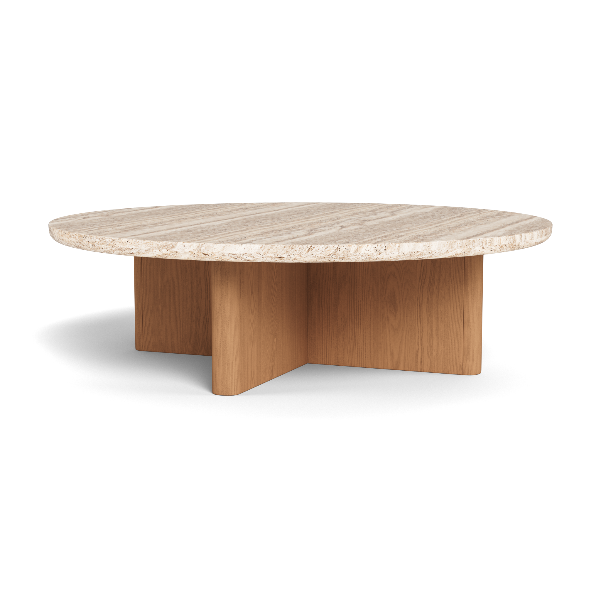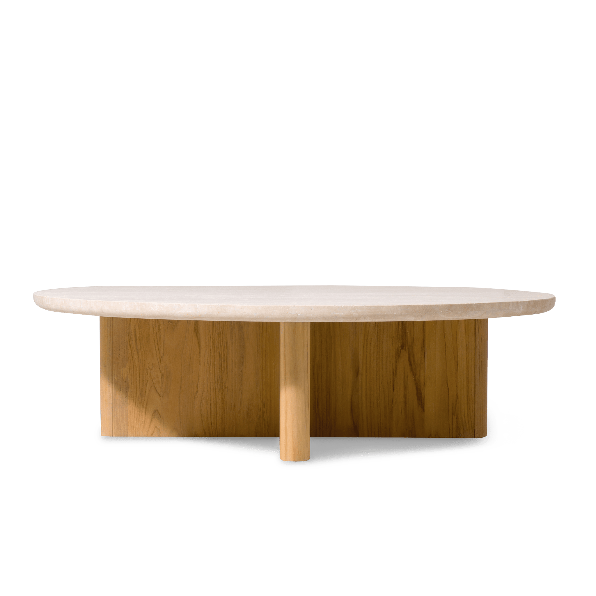 Our Victoria collection balances sculptural curves and right angles for true simplicity of proportion. The Victoria Teak Round Stone Coffee Table was designed as the perfect anchor for your seating set — featuring a solid Indonesian teak base in Natural supporting a round travertine stone top. Special details like curved edges and a half–bull nose add extra refinement. A classic round shape made to invite conversation, this contemporary outdoor coffee table brings harmony to a variety of spaces.