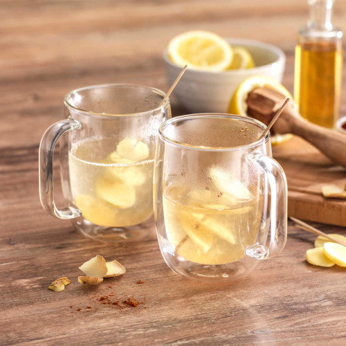 This coffee mug set maintains the toasty temperature of coffee and other hot beverages while remaining cool to the touch on the outside. You can also elegantly serve up hot toddies, mulled wine, or special desserts thanks to their chic translucence.